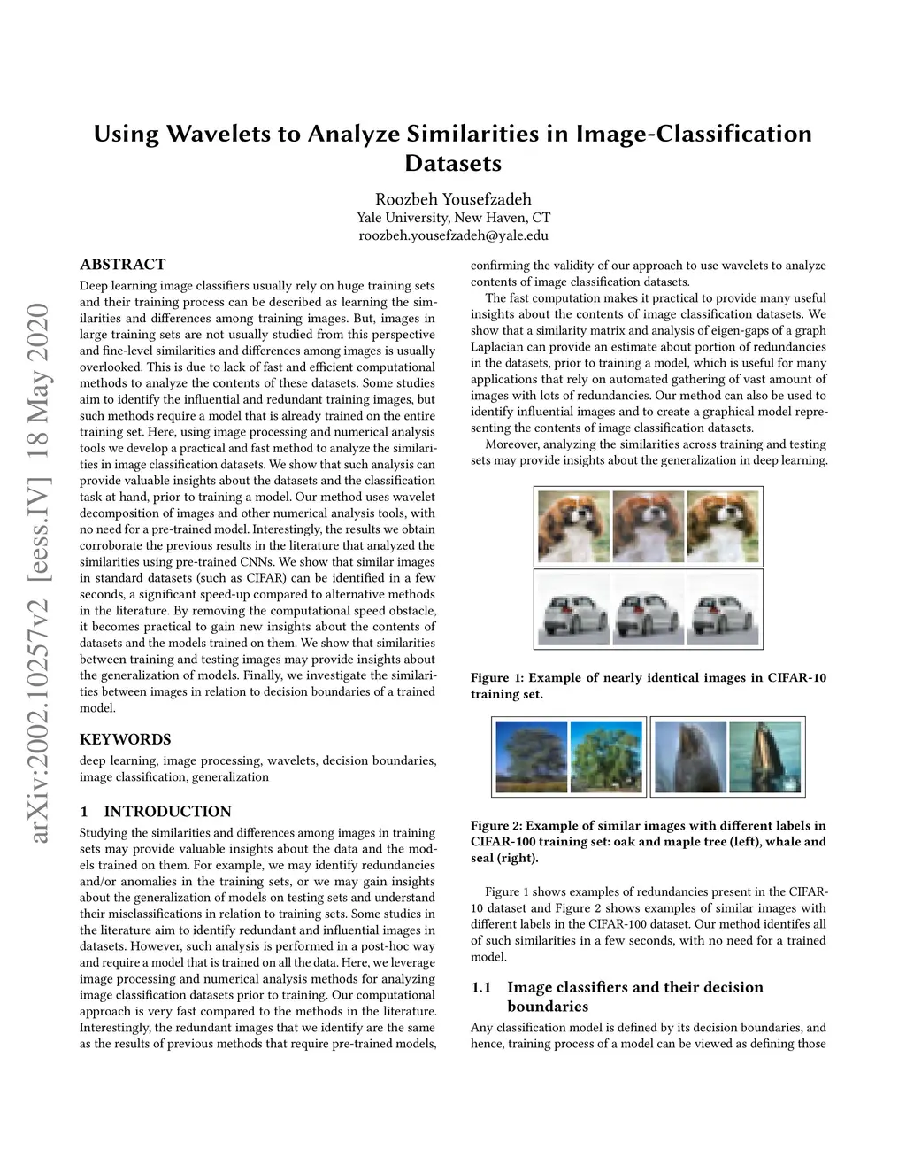 Using Wavelets to Analyze Similarities in Image-Classification Datasets