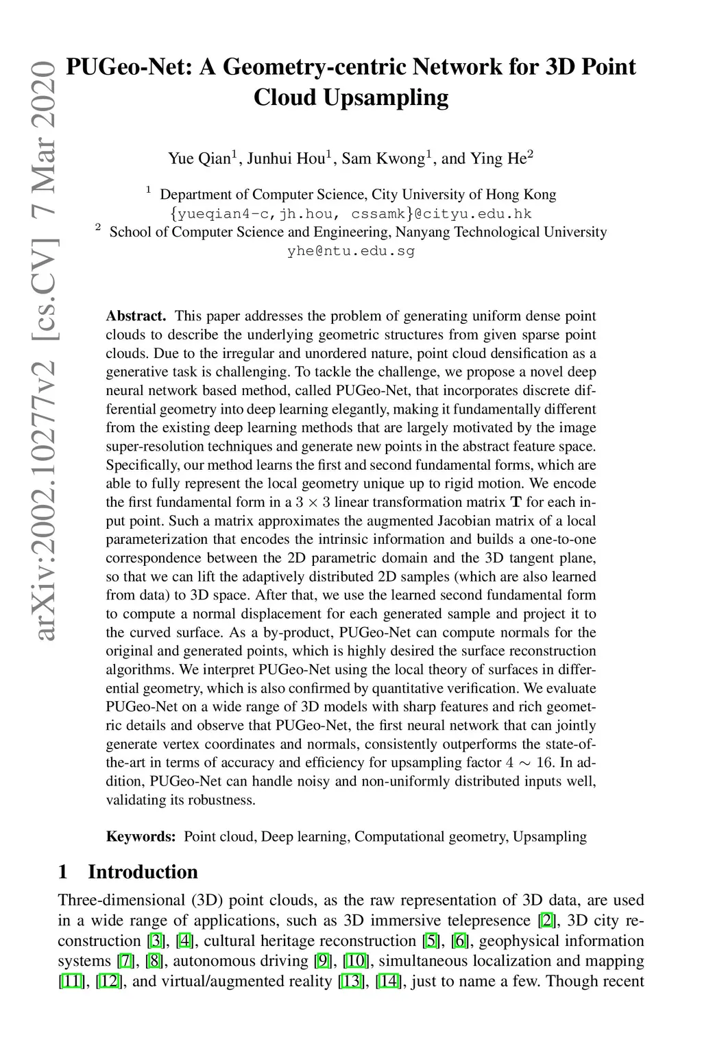 PUGeo-Net: A Geometry-centric Network for 3D Point Cloud Upsampling