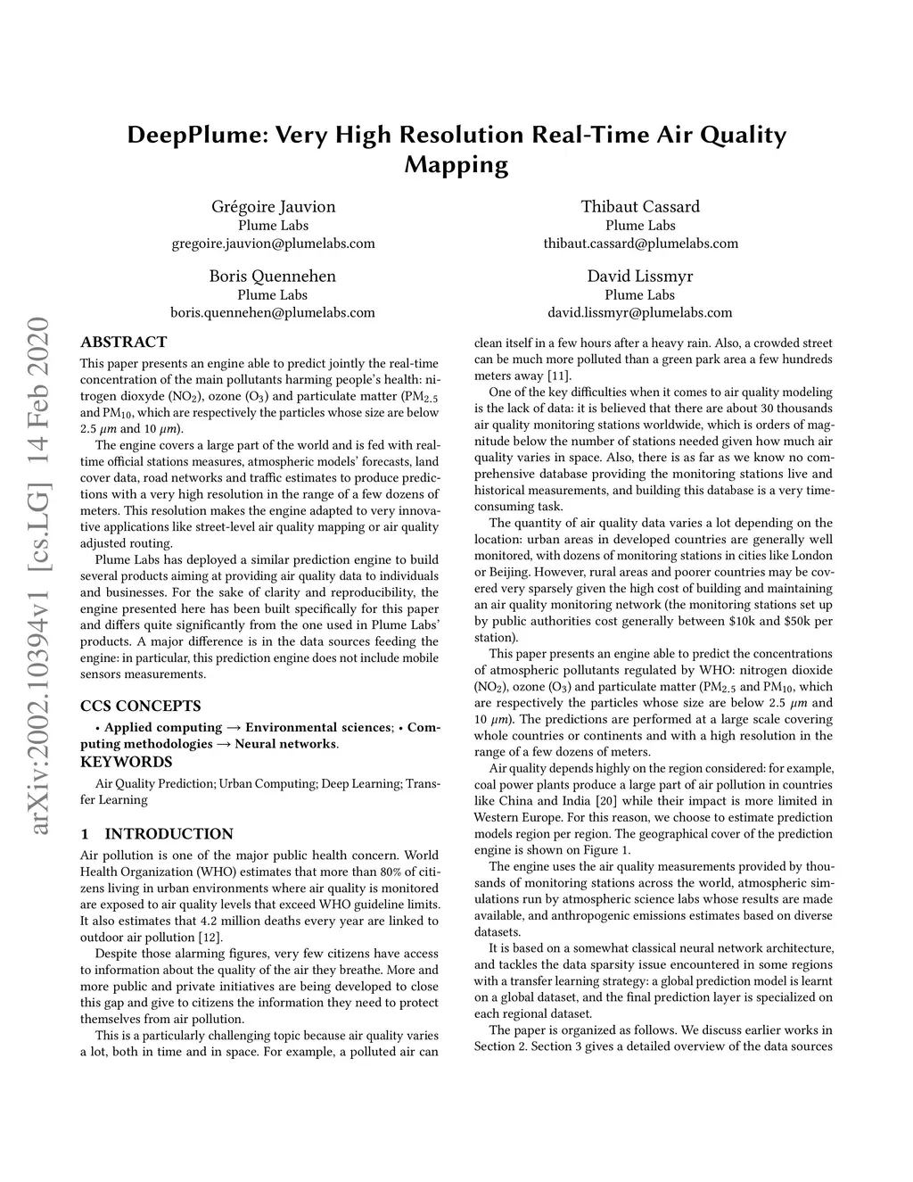 DeepPlume: Very High Resolution Real-Time Air Quality Mapping