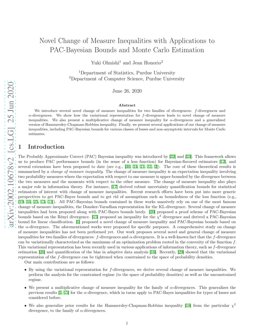 PAC-Bayesian theory has received a growing attention in the machine learning community. Our work extends the PAC-Bayesian theory by introducing several novel change of measure inequalities for two families of divergences: -divergences and -divergences. First, we show how the variational representation for -divergences leads to novel change of measure inequalities. Second, we propose a multiplicative change of measure inequality for -divergences, which leads to tighter bounds under some technical conditions. Finally, we present several PAC-Bayesian bounds for various classes of random variables, by using our novel change of measure inequalities.