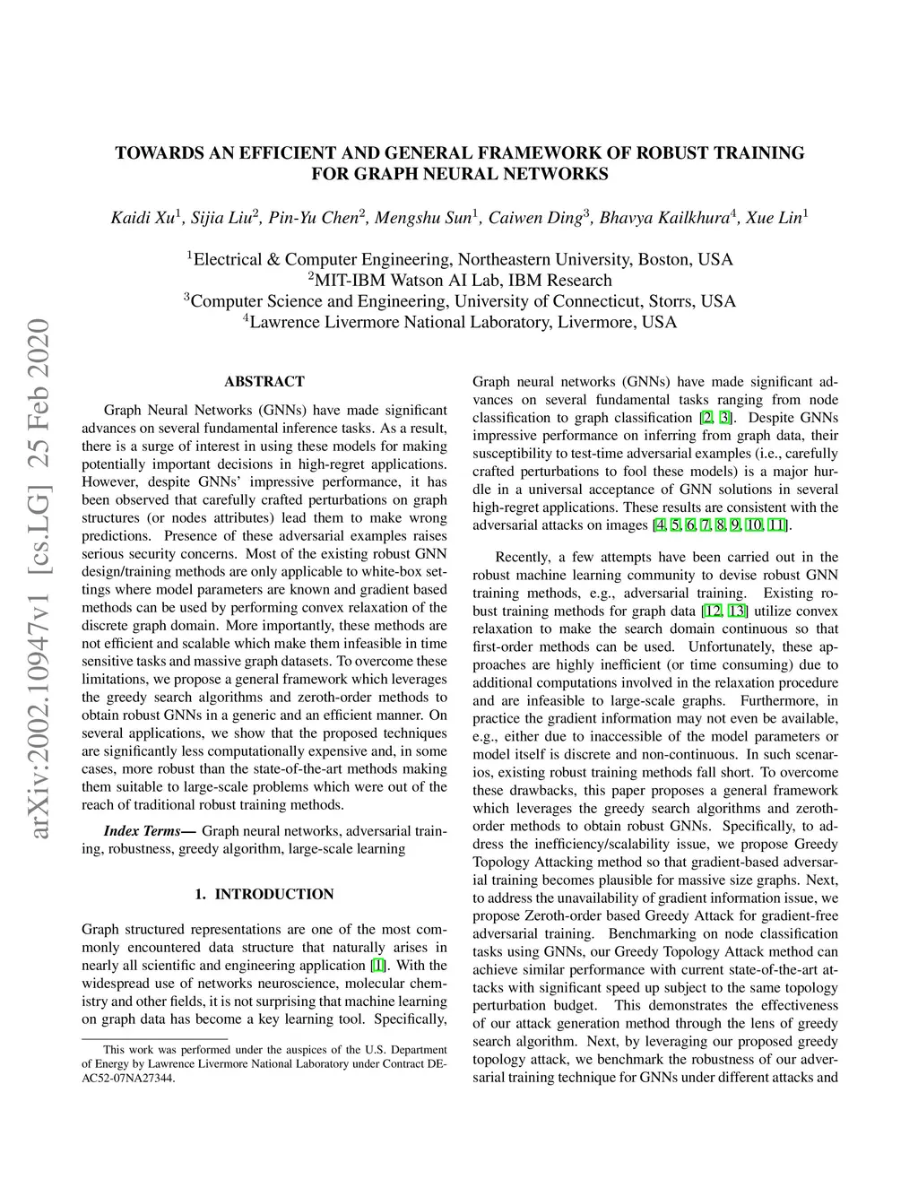 Graph Neural Networks (GNNs) have made significant advances on several fundamental inference tasks. As a result, there is a surge of interest in using these models for making potentially important decisions in high-regret applications. However, despite GNNs' impressive performance, it has been observed that carefully crafted perturbations on graph structures (or nodes attributes) lead them to make wrong predictions. Presence of these adversarial examples raises serious security concerns. Most of the existing robust GNN design/training methods are only applicable to white-box settings where model parameters are known and gradient based methods can be used by performing convex relaxation of the discrete graph domain. More importantly, these methods are not efficient and scalable which make them infeasible in time sensitive tasks and massive graph datasets. To overcome these limitations, we propose a general framework which leverages the greedy search algorithms and zeroth-order methods to obtain robust GNNs in a generic and an efficient manner. On several applications, we show that the proposed techniques are significantly less computationally expensive and, in some cases, more robust than the state-of-the-art methods making them suitable to large-scale problems which were out of the reach of traditional robust training methods.