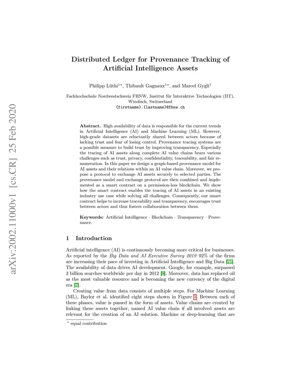 Distributed Ledger for Provenance Tracking of Artificial Intelligence