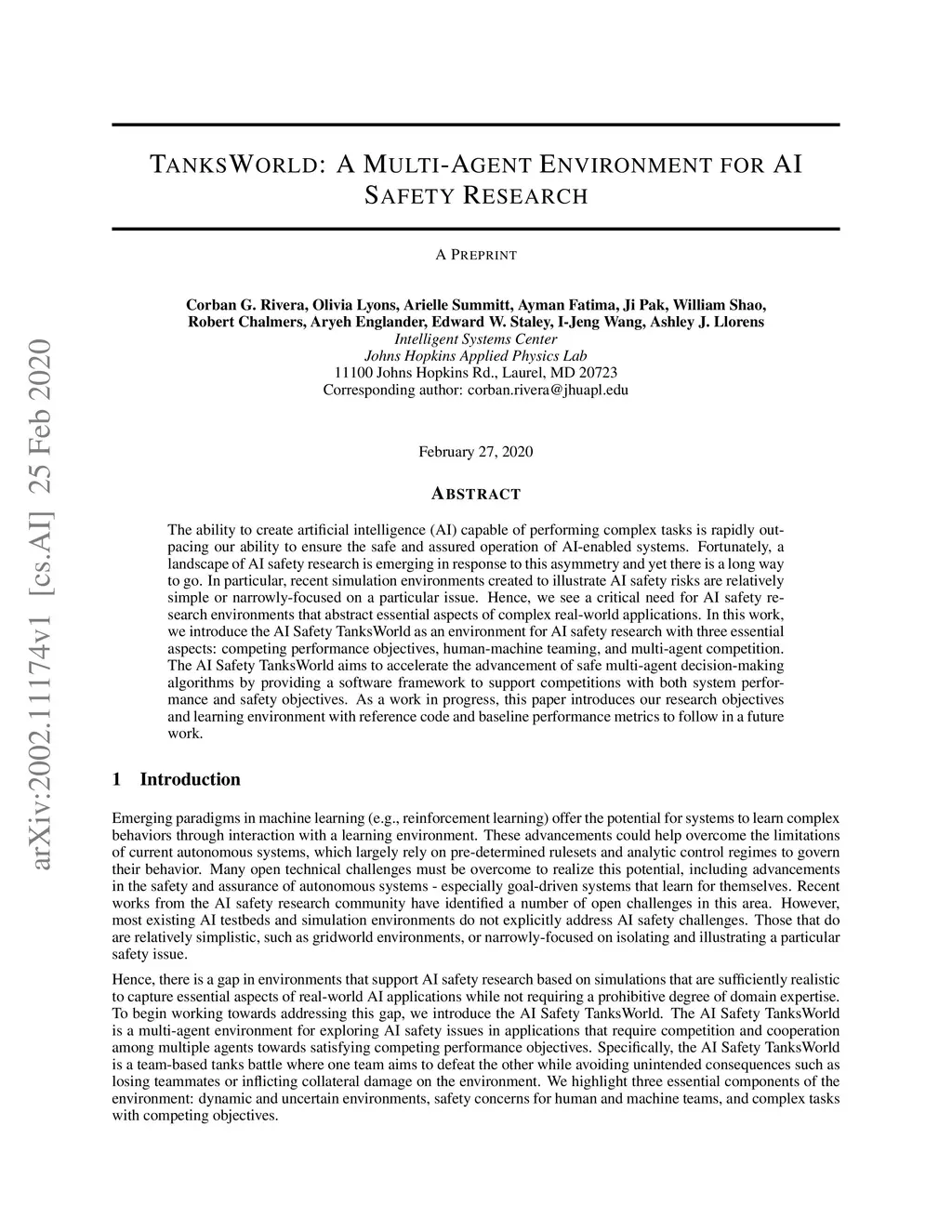 TanksWorld: A Multi-Agent Environment for AI Safety Research
