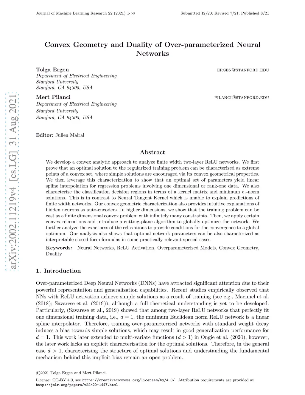 Convex Geometry and Duality of Over-parameterized Neural Networks
