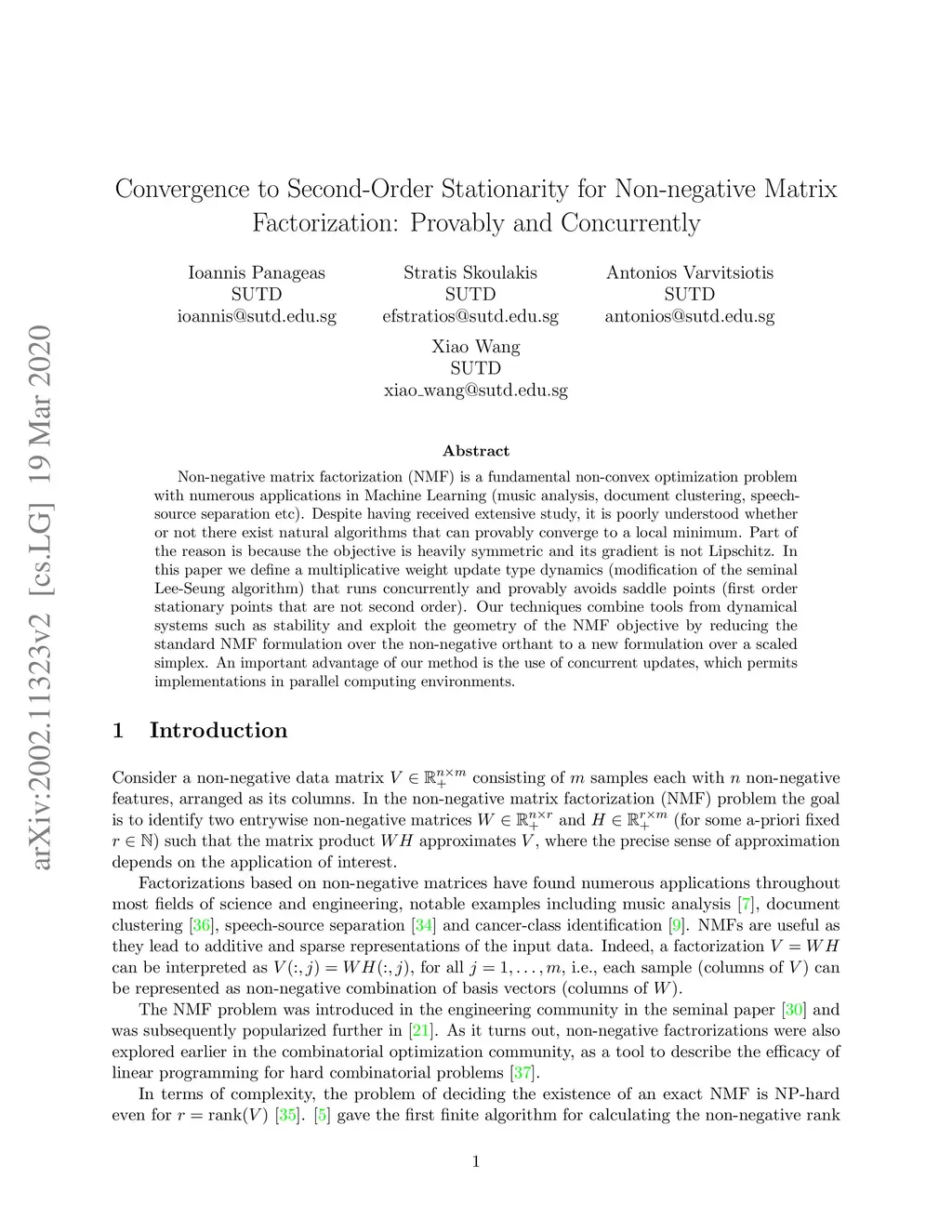 Convergence to Second-Order Stationarity for Non-negative Matrix