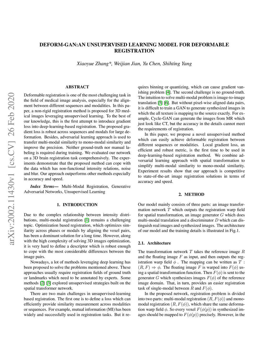 Deform-GAN:An Unsupervised Learning Model for Deformable Registration