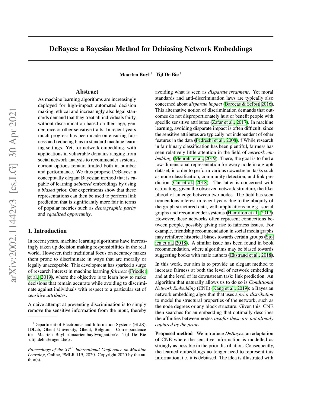 DeBayes: a Bayesian Method for Debiasing Network Embeddings
