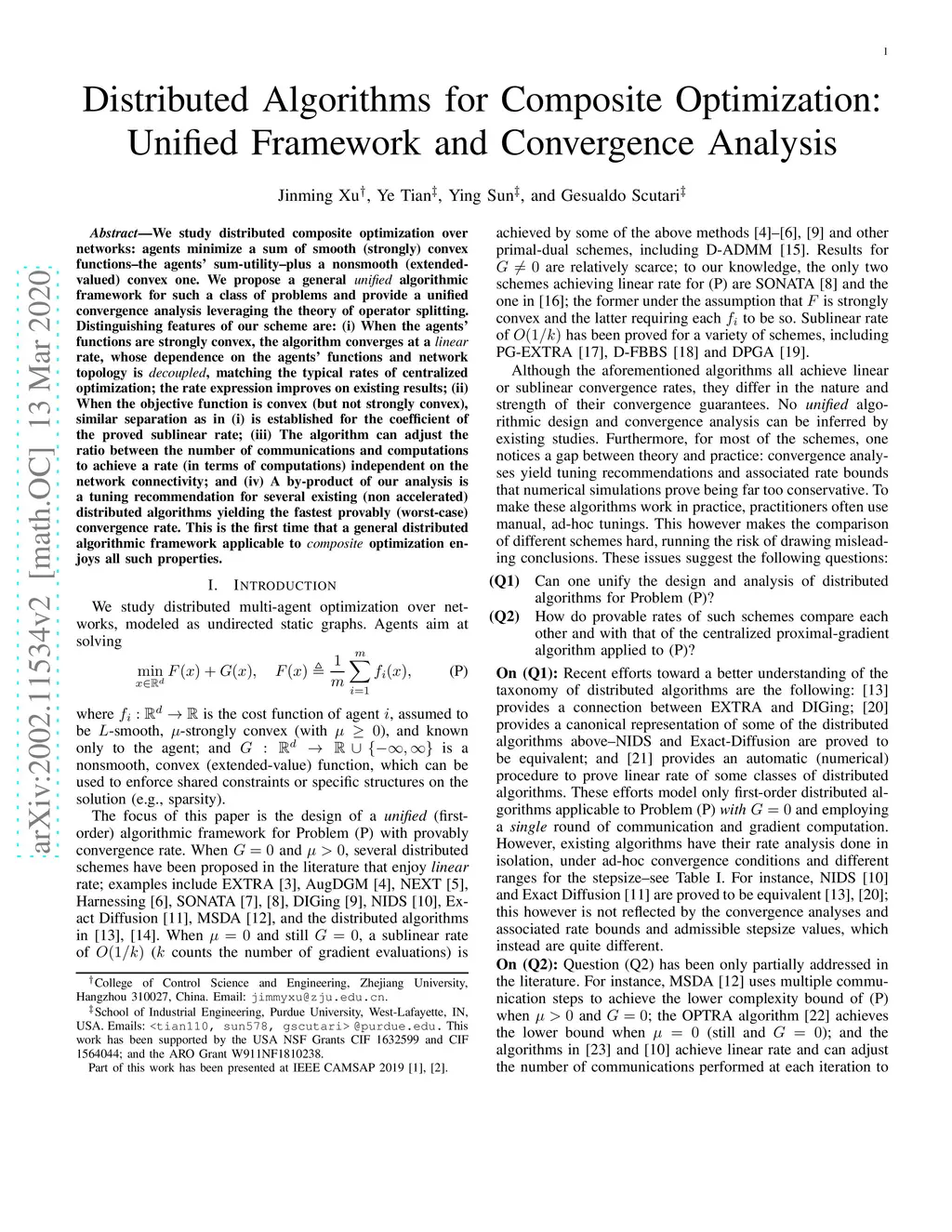 We study distributed composite optimization over networks: agents minimize a sum of smooth (strongly) convex functions, the agents' sum-utility, plus a nonsmooth (extended-valued) convex one. We propose a general unified algorithmic framework for such a class of problems and provide a unified convergence analysis leveraging the theory of operator splitting. Distinguishing features of our scheme are: (i) When the agents' functions are strongly convex, the algorithm converges at a linear rate, whose dependence on the agents' functions and network topology is decoupled, matching the typical rates of centralized optimization; the rate expression improves on existing results; (ii) When the objective function is convex (but not strongly convex), similar separation as in (i) is established for the coefficient of the proved sublinear rate; (iii) The algorithm can adjust the ratio between the number of communications and computations to achieve a rate (in terms of computations) independent on the network connectivity; and (iv) A by-product of our analysis is a tuning recommendation for several existing (non accelerated) distributed algorithms yielding the fastest provably (worst-case) convergence rate. This is the first time that a general distributed algorithmic framework applicable to composite optimization enjoys all such properties.