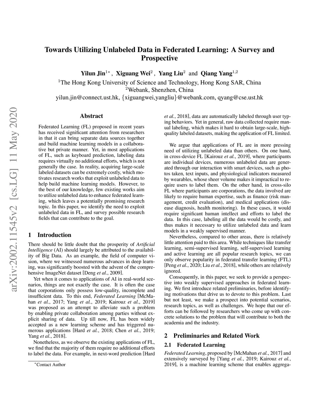 Federated Learning (FL) proposed in recent years has received significant attention from researchers in that it can bring separate data sources together and build machine learning models in a collaborative but private manner. Yet, in most applications of FL, such as keyboard prediction, labeling data requires virtually no additional efforts, which is not generally the case. In reality, acquiring large-scale labeled datasets can be extremely costly, which motivates research works that exploit unlabeled data to help build machine learning models. However, to the best of our knowledge, few existing works aim to utilize unlabeled data to enhance federated learning, which leaves a potentially promising research topic. In this paper, we identify the need to exploit unlabeled data in FL, and survey possible research fields that can contribute to the goal.