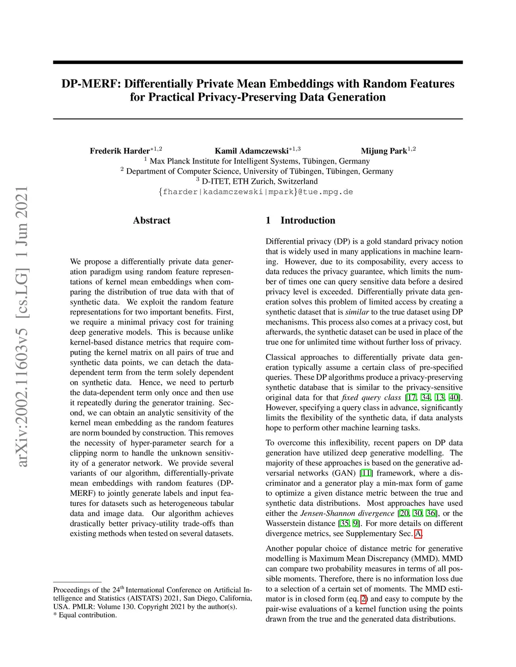 Differentially Private Mean Embeddings with Random Features (DP-MERF)