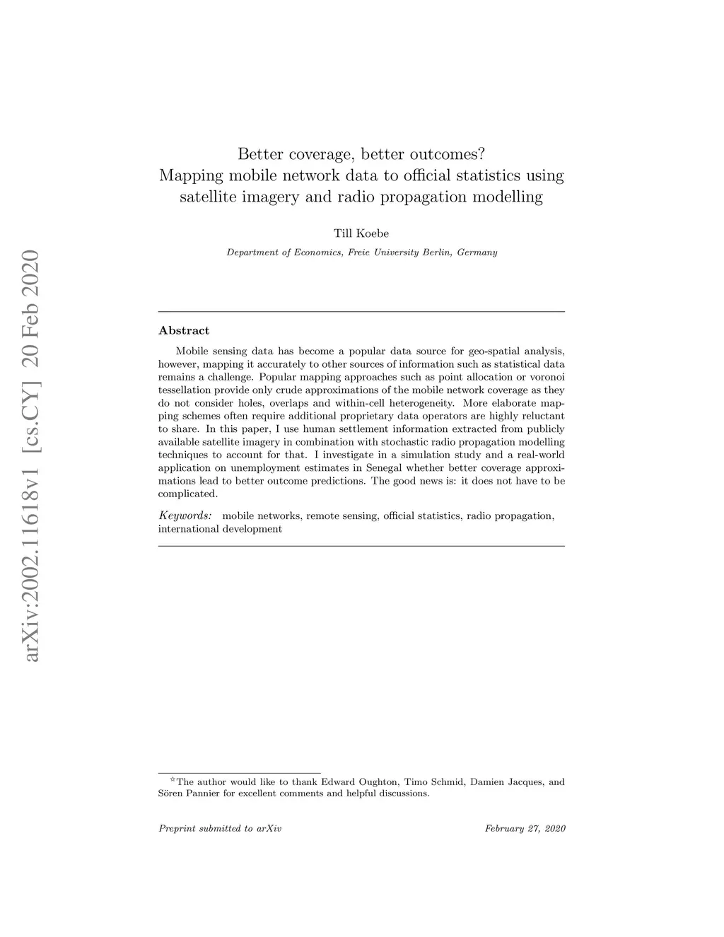 official statistics using satellite imagery and radio propagation modelling