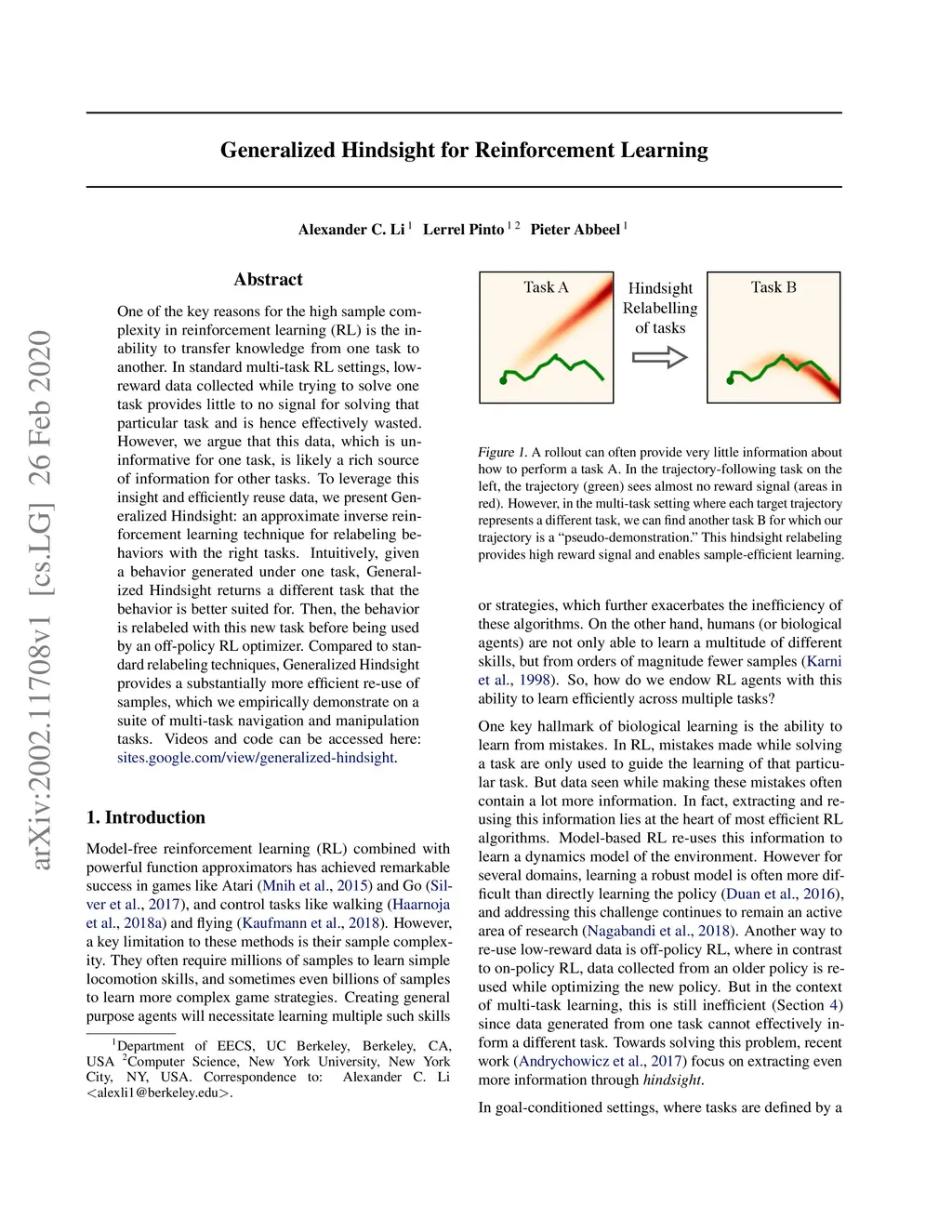 One of the key reasons for the high sample complexity in reinforcement learning (RL) is the inability to transfer knowledge from one task to another. In standard multi-task RL settings, low-reward data collected while trying to solve one task provides little to no signal for solving that particular task and is hence effectively wasted. However, we argue that this data, which is uninformative for one task, is likely a rich source of information for other tasks. To leverage this insight and efficiently reuse data, we present Generalized Hindsight: an approximate inverse reinforcement learning technique for relabeling behaviors with the right tasks. Intuitively, given a behavior generated under one task, Generalized Hindsight returns a different task that the behavior is better suited for. Then, the behavior is relabeled with this new task before being used by an off-policy RL optimizer. Compared to standard relabeling techniques, Generalized Hindsight provides a substantially more efficient reuse of samples, which we empirically demonstrate on a suite of multi-task navigation and manipulation tasks. Videos and code can be accessed here: https://sites.google.com/view/generalized-hindsight.