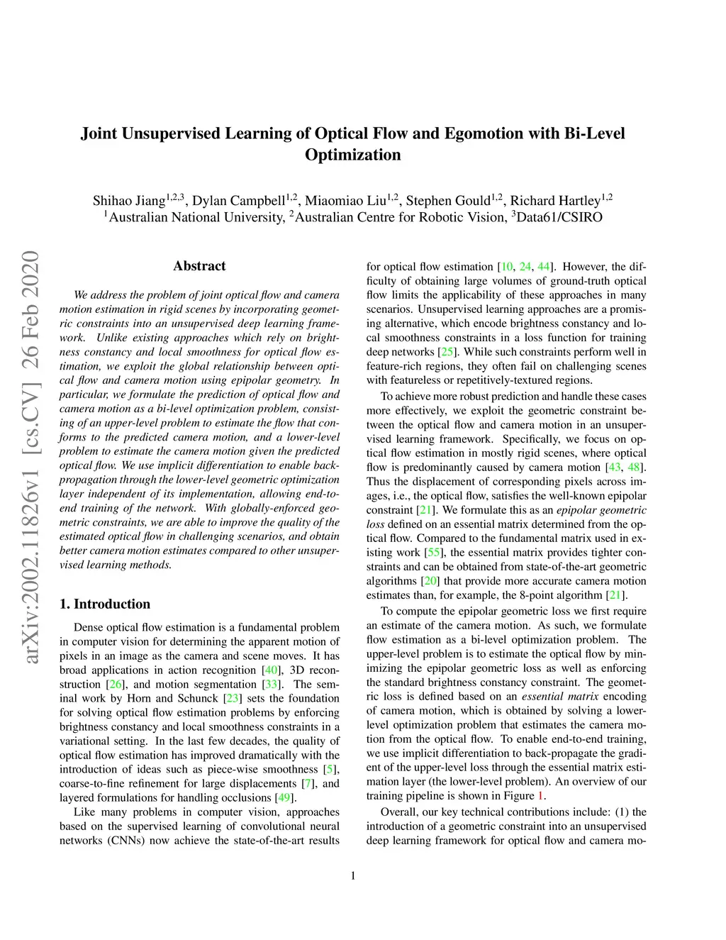 Joint Unsupervised Learning of Optical Flow and Egomotion with Bi-Level