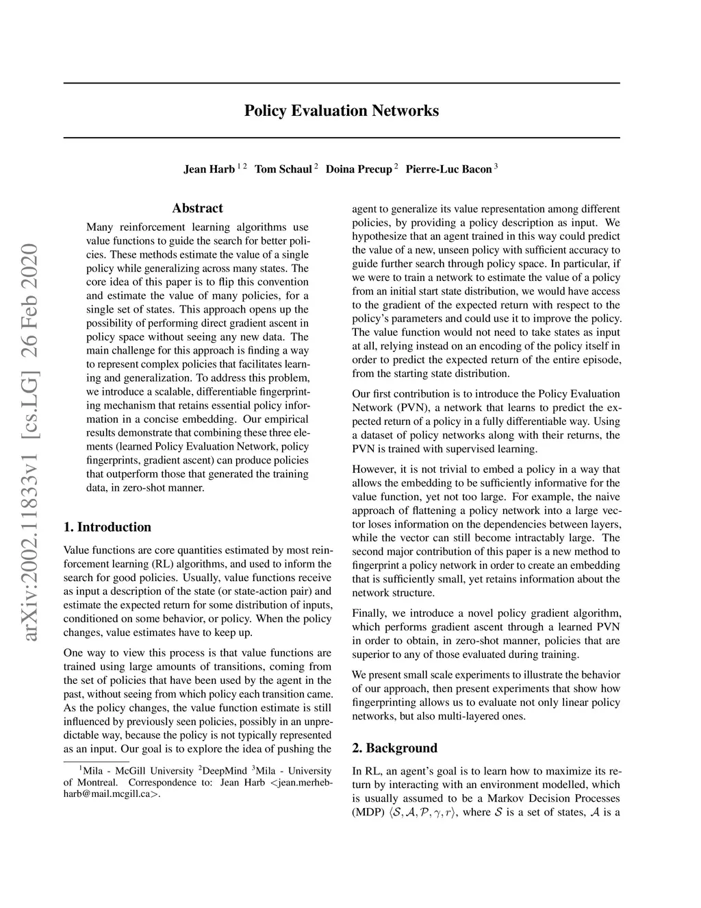 Many reinforcement learning algorithms use value functions to guide the search for better policies. These methods estimate the value of a single policy while generalizing across many states. The core idea of this paper is to flip this convention and estimate the value of many policies, for a single set of states. This approach opens up the possibility of performing direct gradient ascent in policy space without seeing any new data. The main challenge for this approach is finding a way to represent complex policies that facilitates learning and generalization. To address this problem, we introduce a scalable, differentiable fingerprinting mechanism that retains essential policy information in a concise embedding. Our empirical results demonstrate that combining these three elements (learned Policy Evaluation Network, policy fingerprints, gradient ascent) can produce policies that outperform those that generated the training data, in zero-shot manner.