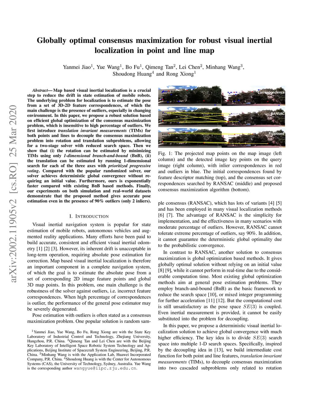 Globally optimal consensus maximization for robust visual inertial