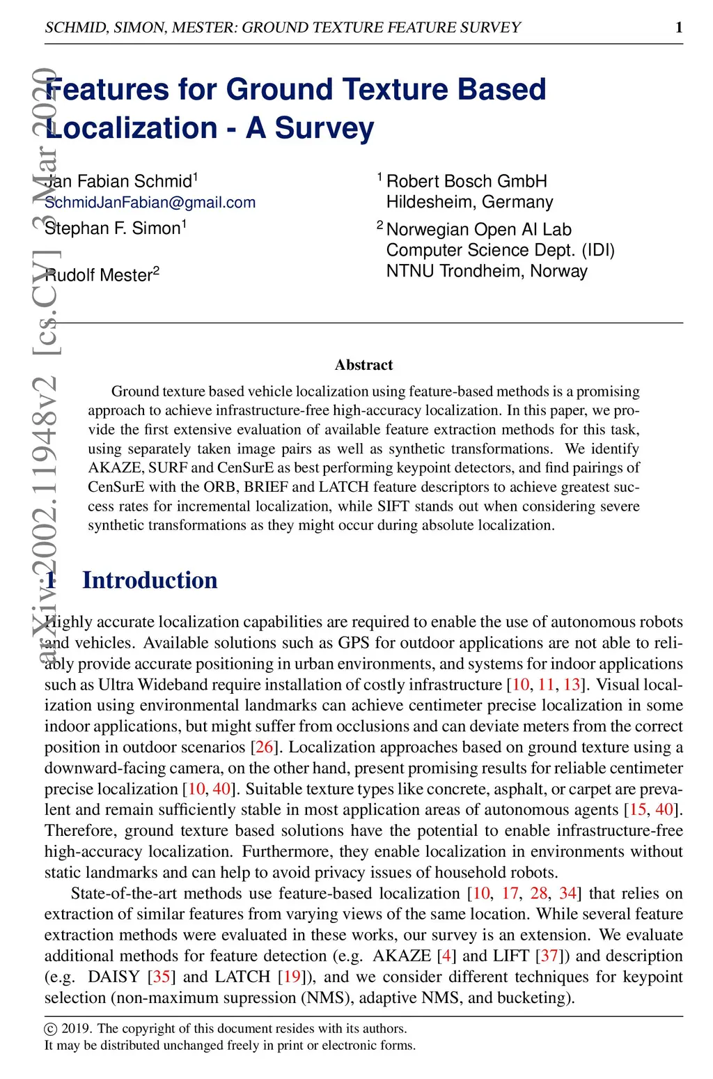 Features for Ground Texture Based Localization -- A Survey