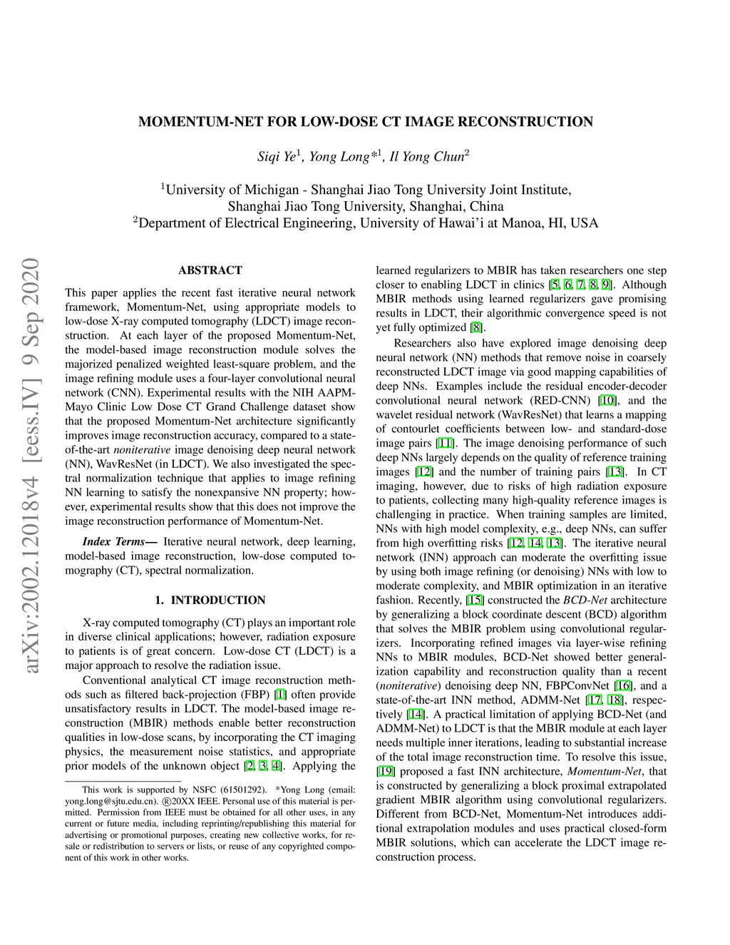Momentum-Net for Low-Dose CT Image Reconstruction