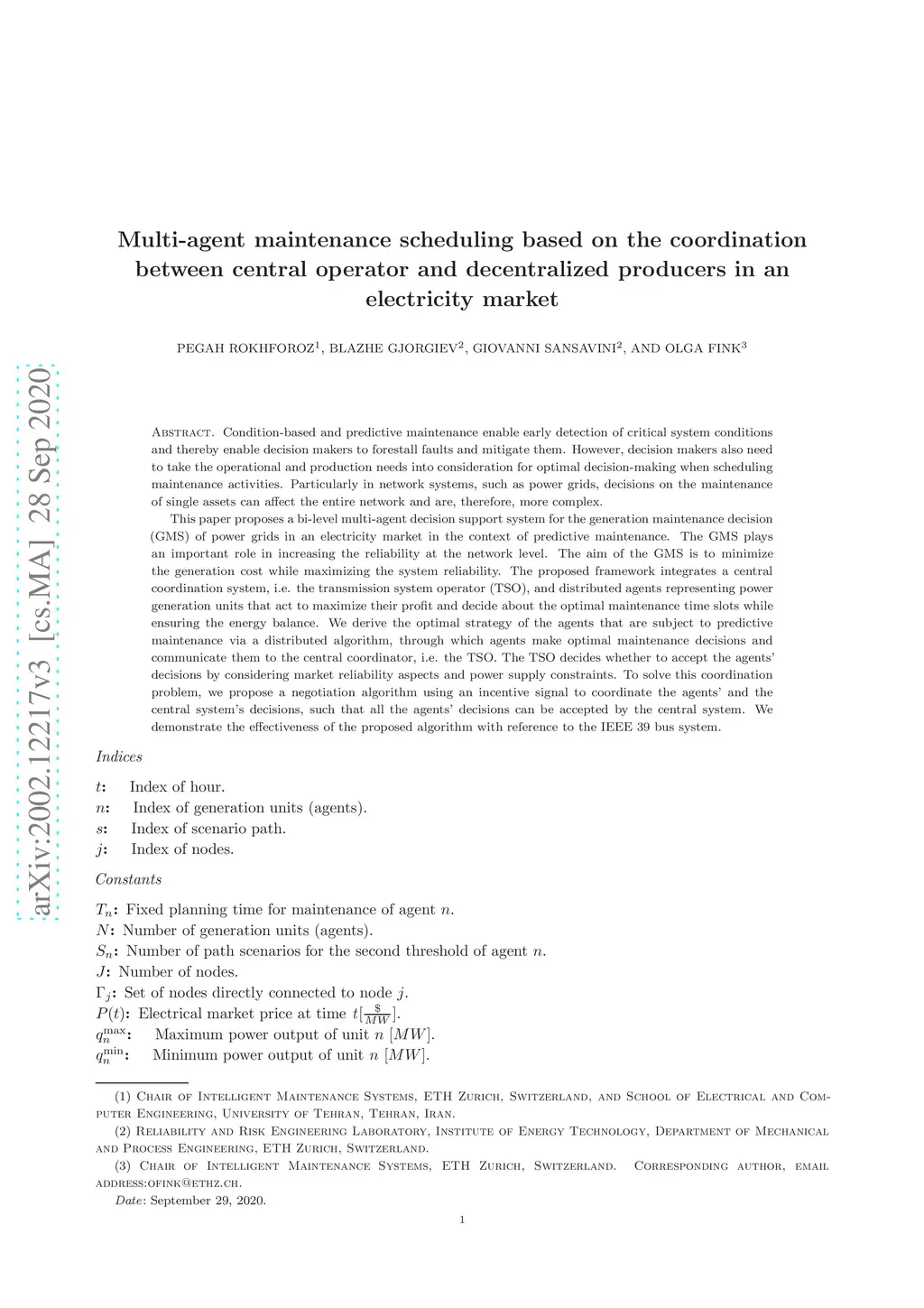 Multi-agent maintenance scheduling based on the coordination between central operator and decentralized producers in an electricity market
