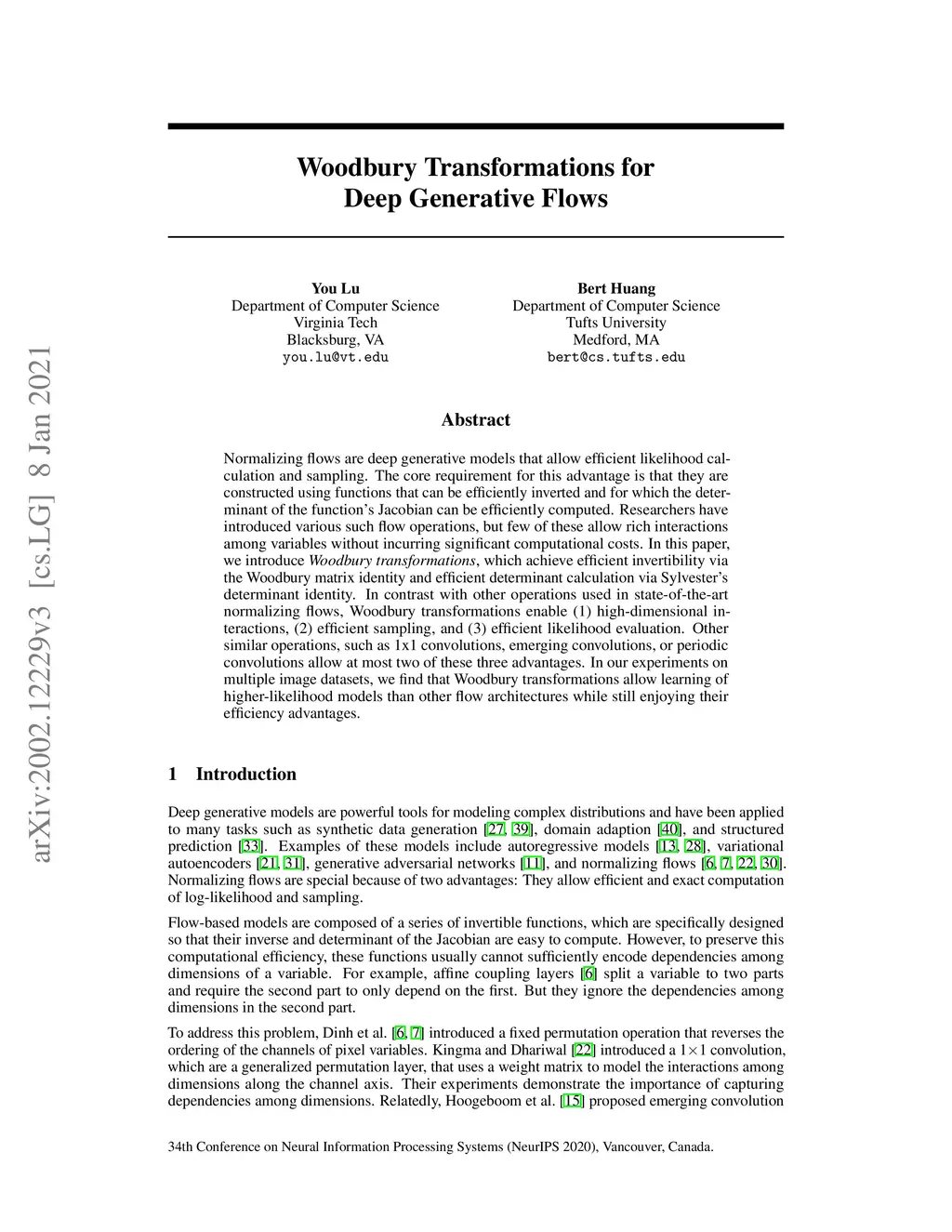 Woodbury Transformations for Deep Generative Flows