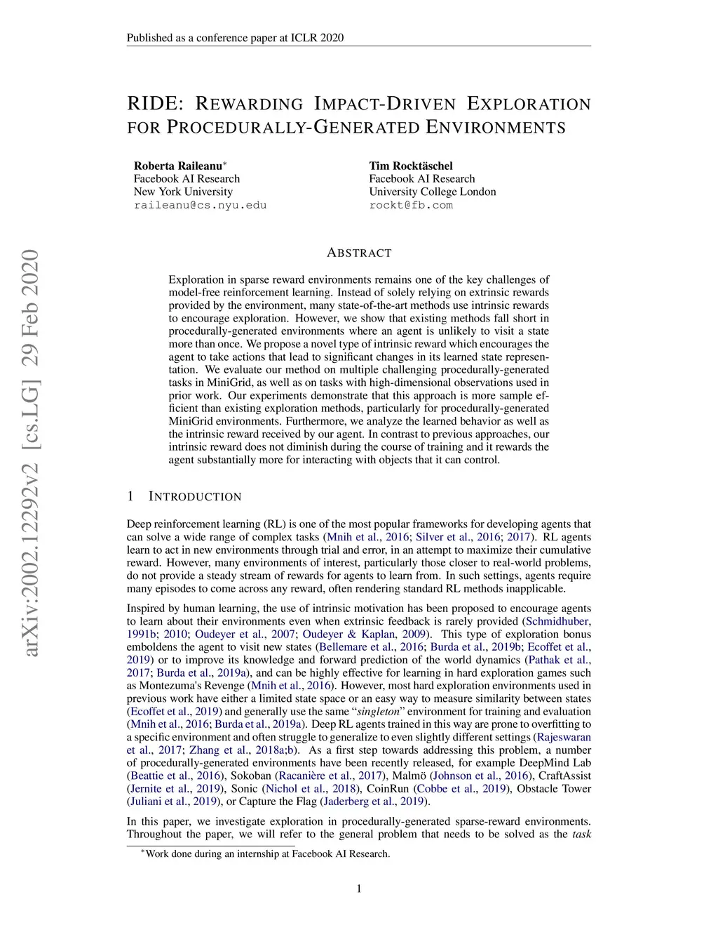 Exploration in sparse reward environments remains one of the key challenges of model-free reinforcement learning. Instead of solely relying on extrinsic rewards provided by the environment, many state-of-the-art methods use intrinsic rewards to encourage exploration. However, we show that existing methods fall short in procedurally-generated environments where an agent is unlikely to visit a state more than once. We propose a novel type of intrinsic reward which encourages the agent to take actions that lead to significant changes in its learned state representation. We evaluate our method on multiple challenging procedurally-generated tasks in MiniGrid, as well as on tasks with high-dimensional observations used in prior work. Our experiments demonstrate that this approach is more sample efficient than existing exploration methods, particularly for procedurally-generated MiniGrid environments. Furthermore, we analyze the learned behavior as well as the intrinsic reward received by our agent. In contrast to previous approaches, our intrinsic reward does not diminish during the course of training and it rewards the agent substantially more for interacting with objects that it can control.
