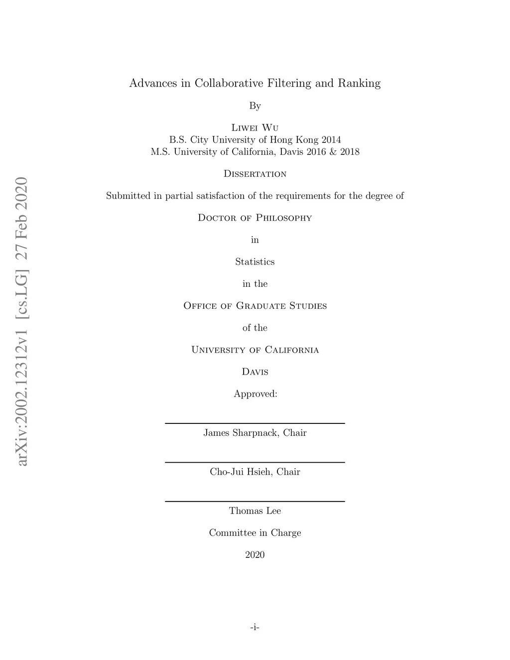 In this dissertation, we cover some recent advances in collaborative filtering and ranking. In chapter 1, we give a brief introduction of the history and the current landscape of collaborative filtering and ranking; chapter 2 we first talk about pointwise collaborative filtering problem with graph information, and how our proposed new method can encode very deep graph information which helps four existing graph collaborative filtering algorithms; chapter 3 is on the pairwise approach for collaborative ranking and how we speed up the algorithm to near-linear time complexity; chapter 4 is on the new listwise approach for collaborative ranking and how the listwise approach is a better choice of loss for both explicit and implicit feedback over pointwise and pairwise loss; chapter 5 is about the new regularization technique Stochastic Shared Embeddings (SSE) we proposed for embedding layers and how it is both theoretically sound and empirically effectively for 6 different tasks across recommendation and natural language processing; chapter 6 is how we introduce personalization for the state-of-the-art sequential recommendation model with the help of SSE, which plays an important role in preventing our personalized model from overfitting to the training data; chapter 7, we summarize what we have achieved so far and predict what the future directions can be; chapter 8 is the appendix to all the chapters.