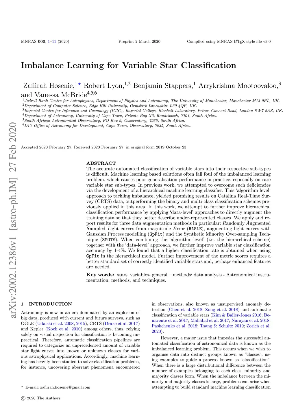 Imbalance Learning for Variable Star Classification