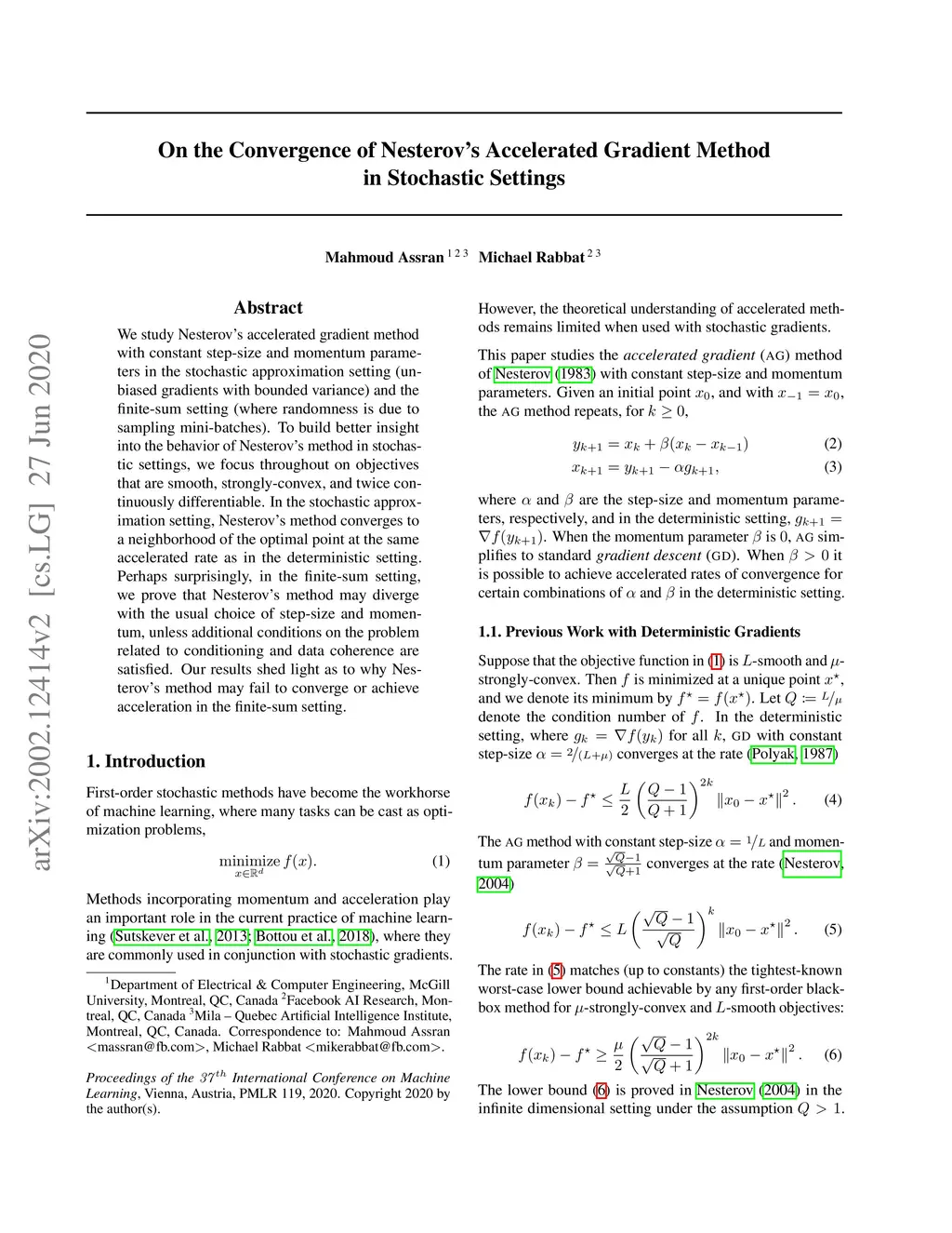 We study Nesterov's accelerated gradient method with constant step-size and momentum parameters in the stochastic approximation setting (unbiased gradients with bounded variance) and the finite-sum setting (where randomness is due to sampling mini-batches). To build better insight into the behavior of Nesterov's method in stochastic settings, we focus throughout on objectives that are smooth, strongly-convex, and twice continuously differentiable. In the stochastic approximation setting, Nesterov's method converges to a neighborhood of the optimal point at the same accelerated rate as in the deterministic setting. Perhaps surprisingly, in the finite-sum setting, we prove that Nesterov's method may diverge with the usual choice of step-size and momentum, unless additional conditions on the problem related to conditioning and data coherence are satisfied. Our results shed light as to why Nesterov's method may fail to converge or achieve acceleration in the finite-sum setting.