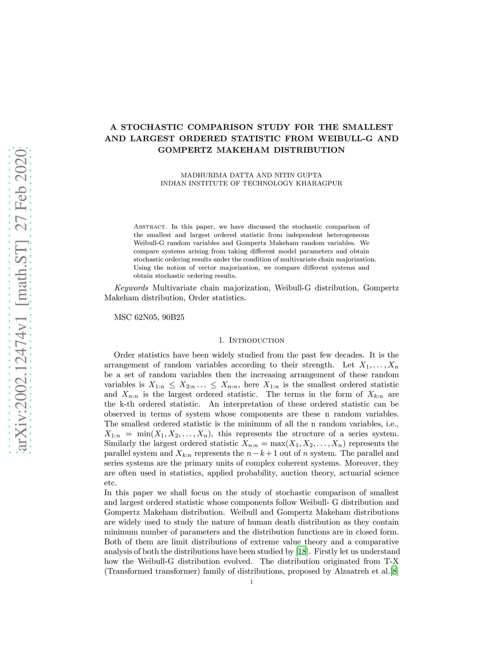 statistic from Weibull-G and Gompertz Makeham distribution