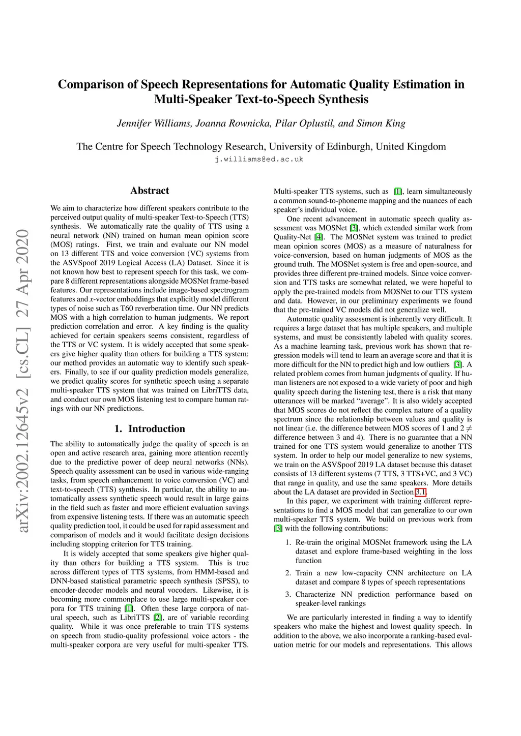 We aim to characterize how different speakers contribute to the perceived output quality of multi-speaker Text-to-Speech (TTS) synthesis. We automatically rate the quality of TTS using a neural network (NN) trained on human mean opinion score (MOS) ratings. First, we train and evaluate our NN model on 13 different TTS and voice conversion (VC) systems from the ASVSpoof 2019 Logical Access (LA) Dataset. Since it is not known how best to represent speech for this task, we compare 8 different representations alongside MOSNet frame-based features. Our representations include image-based spectrogram features and x-vector embeddings that explicitly model different types of noise such as T60 reverberation time. Our NN predicts MOS with a high correlation to human judgments. We report prediction correlation and error. A key finding is the quality achieved for certain speakers seems consistent, regardless of the TTS or VC system. It is widely accepted that some speakers give higher quality than others for building a TTS system: our method provides an automatic way to identify such speakers. Finally, to see if our quality prediction models generalize, we predict quality scores for synthetic speech using a separate multi-speaker TTS system that was trained on LibriTTS data, and conduct our own MOS listening test to compare human ratings with our NN predictions.