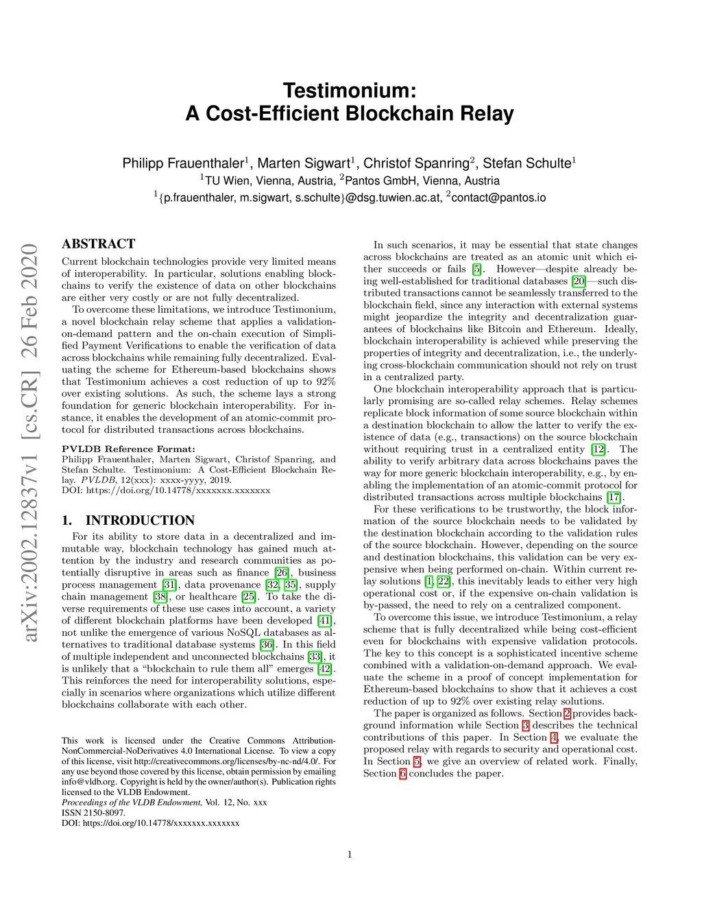 Testimonium: A Cost-Efficient Blockchain Relay