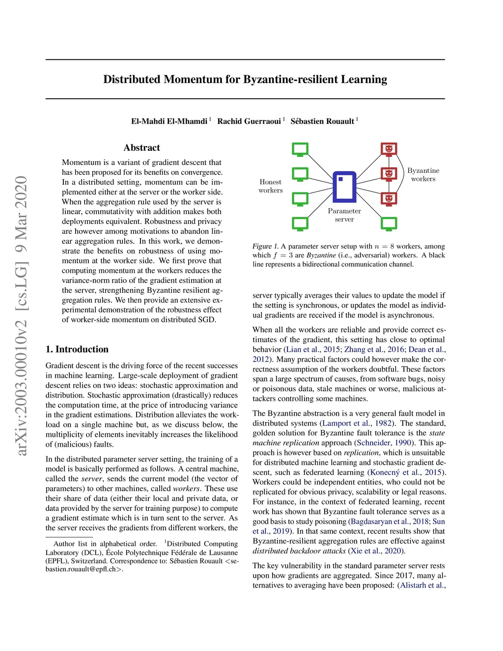 Distributed Momentum for Byzantine-resilient Learning