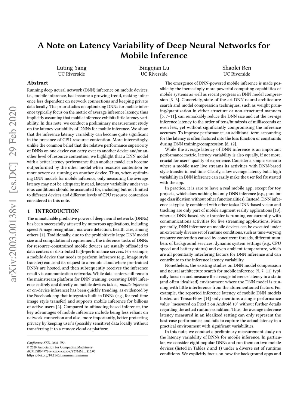 A Note on Latency Variability of Deep Neural Networks for Mobile