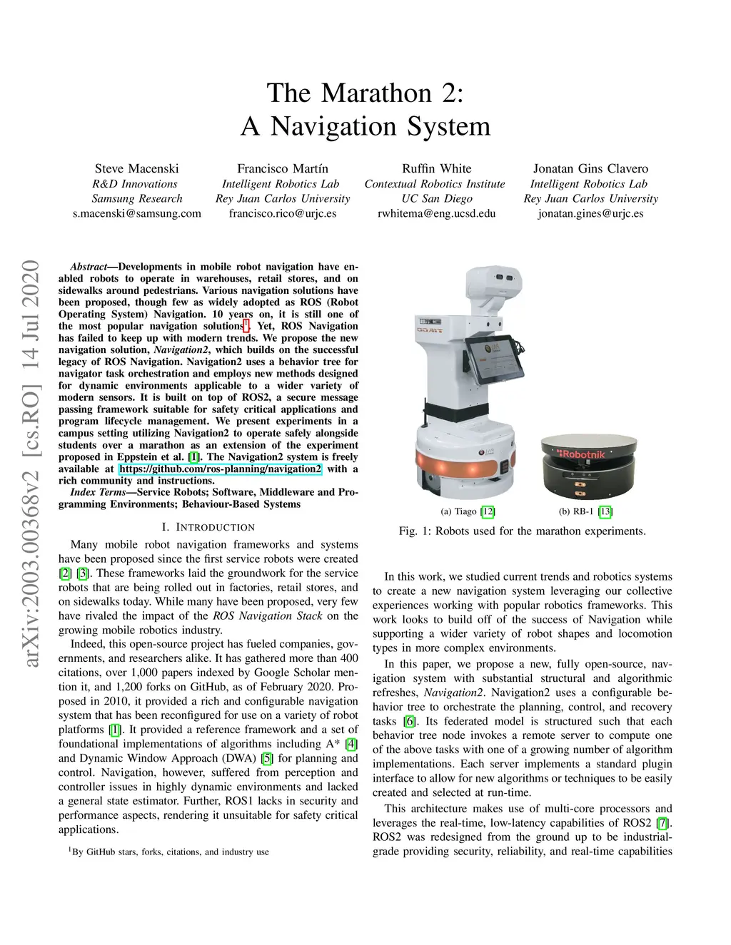 Developments in mobile robot navigation have enabled robots to operate in warehouses, retail stores, and on sidewalks around pedestrians. Various navigation solutions have been proposed, though few as widely adopted as ROS Navigation. 10 years on, it is still one of the most popular navigation solutions. Yet, ROS Navigation has failed to keep up with modern trends. We propose the new navigation solution, Navigation2, which builds on the successful legacy of ROS Navigation. Navigation2 uses a behavior tree for navigator task orchestration and employs new methods designed for dynamic environments applicable to a wider variety of modern sensors. It is built on top of ROS2, a secure message passing framework suitable for safety critical applications and program lifecycle management. We present experiments in a campus setting utilizing Navigation2 to operate safely alongside students over a marathon as an extension of the experiment proposed in Eppstein et al. The Navigation2 system is freely available at https://github.com/ros-planning/navigation2 with a rich community and instructions.