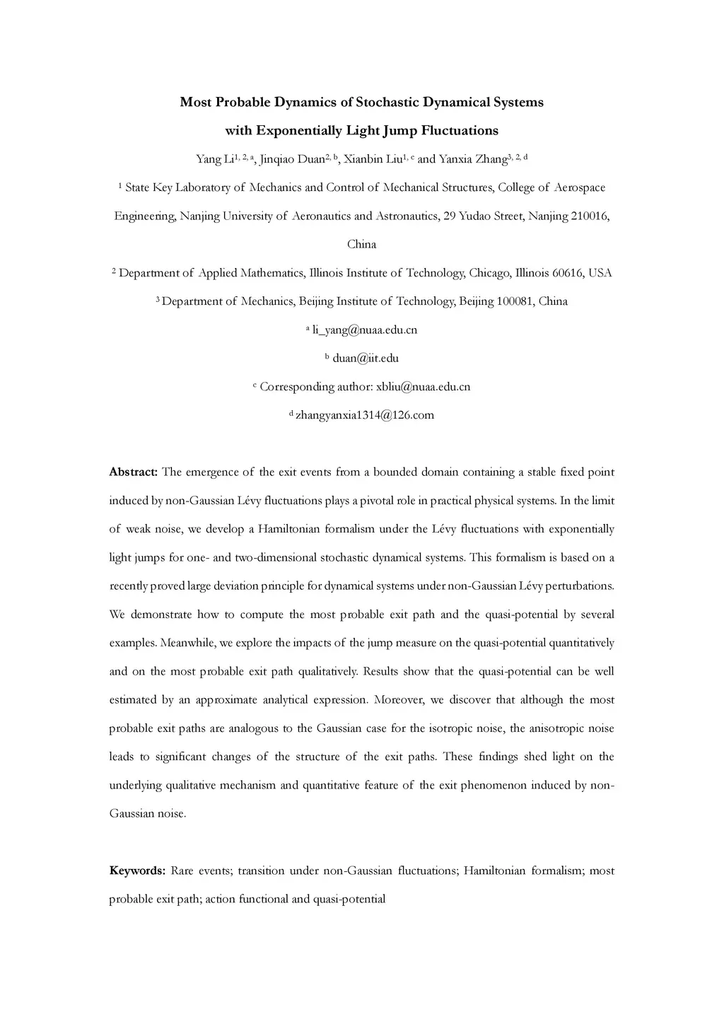 The emergence of the exit events from a bounded domain containing a stable fixed point induced by non-Gaussian L\évy fluctuations plays a pivotal role in practical physical systems. In the limit of weak noise, we develop a Hamiltonian formalism under the L\évy fluctuations with exponentially light jumps for one- and two-dimensional stochastic dynamical systems. This formalism is based on a recently proved large deviation principle for dynamical systems under non-Gaussian L\évy perturbations. We demonstrate how to compute the most probable exit path and the quasi-potential by several examples. Meanwhile, we explore the impacts of the jump measure on the quasi-potential quantitatively and on the most probable exit path qualitatively. Results show that the quasi-potential can be well estimated by an approximate analytical expression. Moreover, we discover that although the most probable exit paths are analogous to the Gaussian case for the isotropic noise, the anisotropic noise leads to significant changes of the structure of the exit paths. These findings shed light on the underlying qualitative mechanism and quantitative feature of the exit phenomenon induced by non-Gaussian noise.