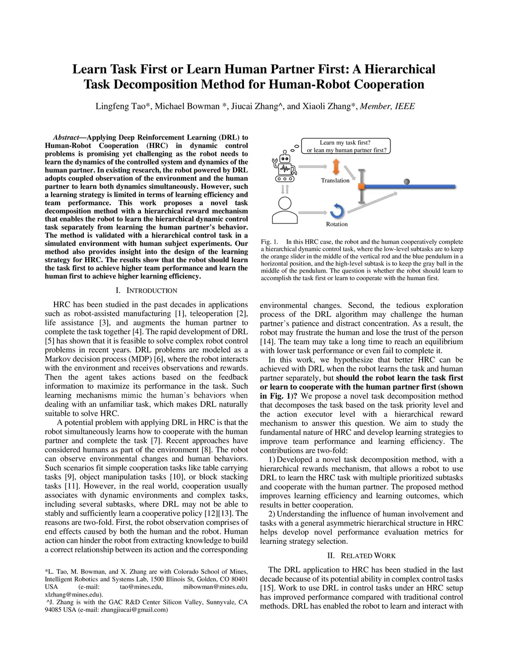Learn Task First or Learn Human Partner First: A Hierarchical Task