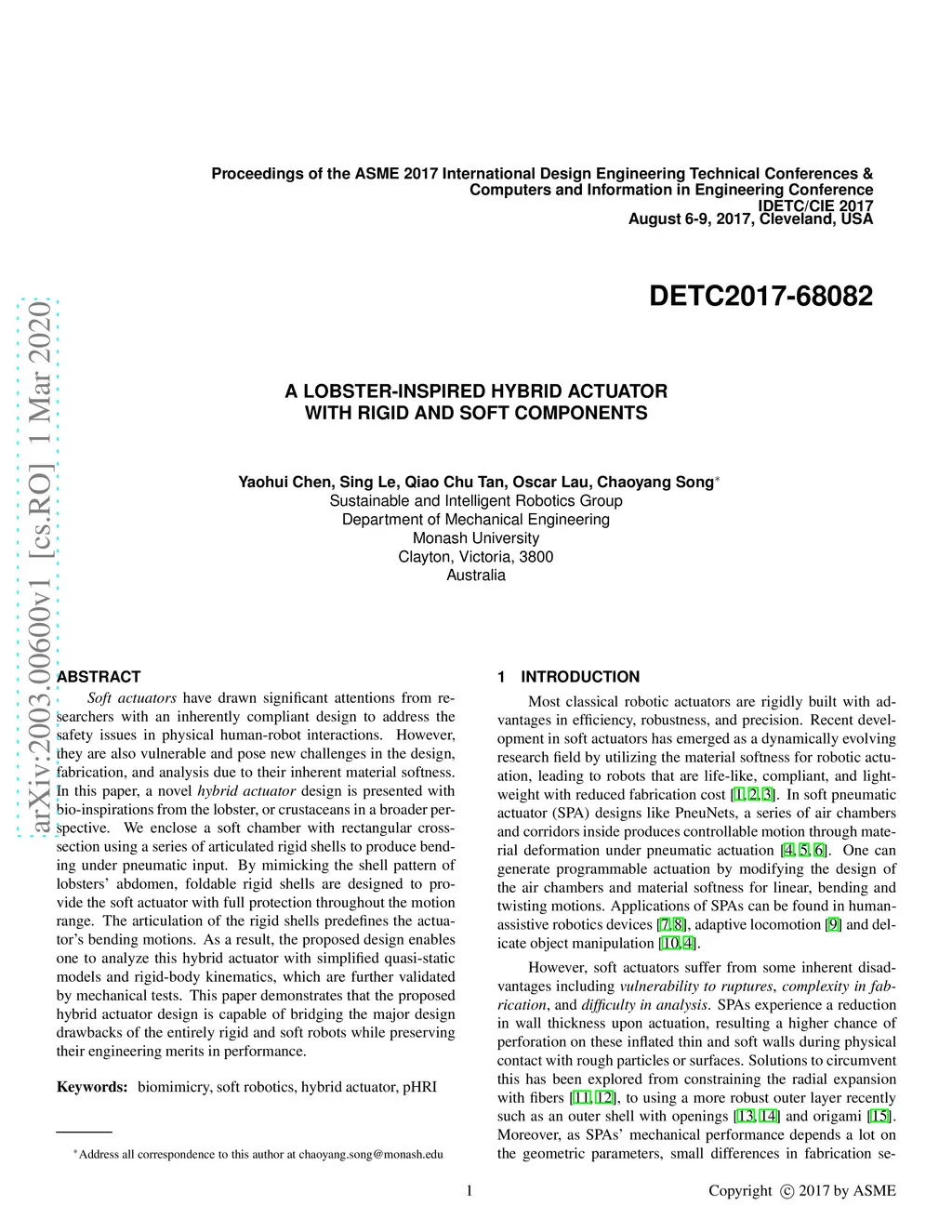 A Lobster-inspired Hybrid Actuator With Rigid and Soft Components