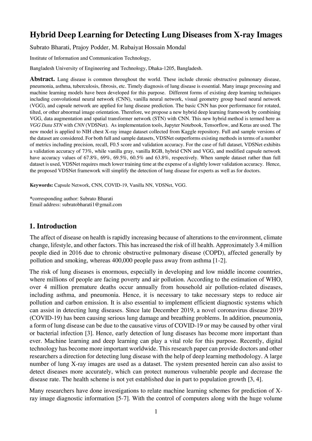 Disease Detection from Lung X-ray Images based on Hybrid Deep Learning