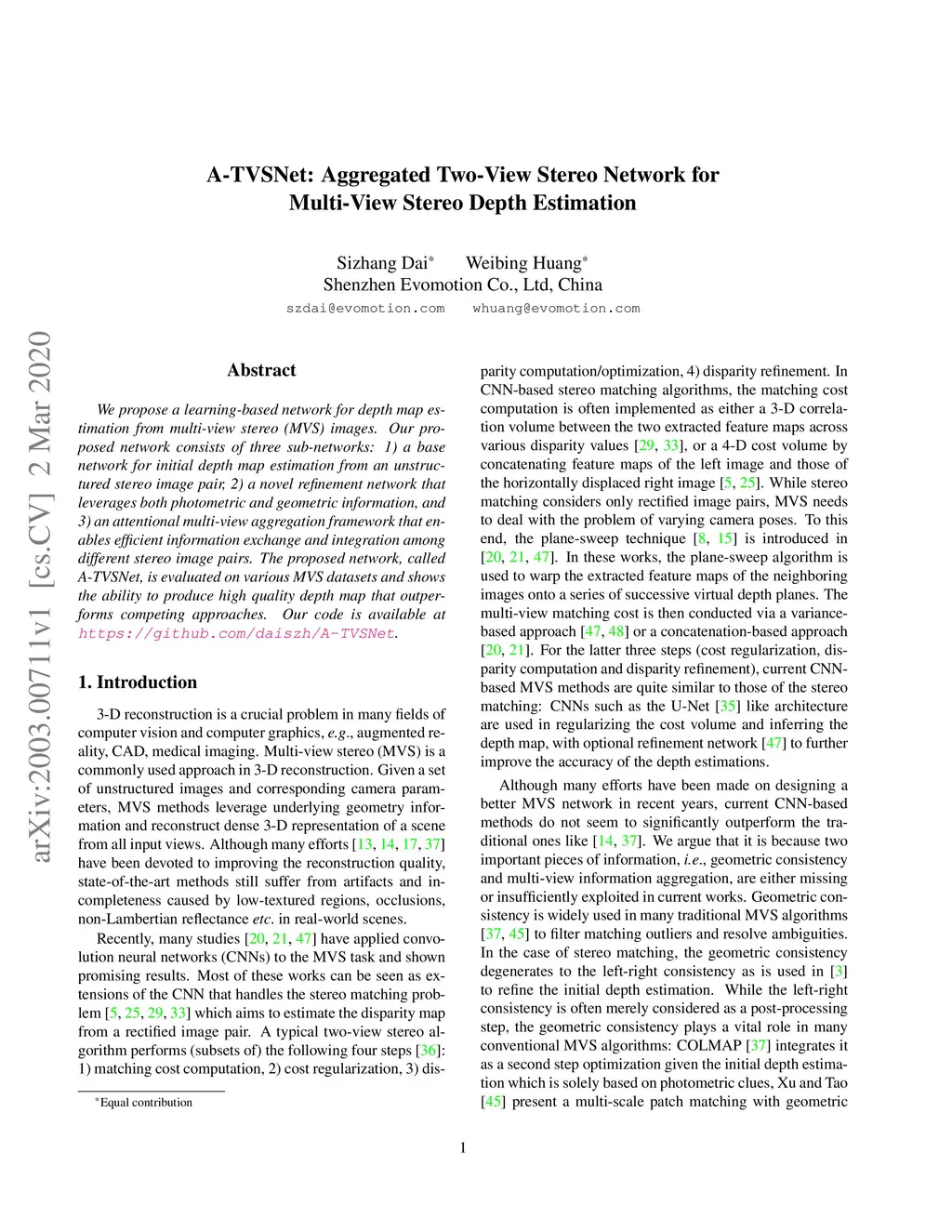 We propose a learning-based network for depth map estimation from multi-view stereo (MVS) images. Our proposed network consists of three sub-networks: 1) a base network for initial depth map estimation from an unstructured stereo image pair, 2) a novel refinement network that leverages both photometric and geometric information, and 3) an attentional multi-view aggregation framework that enables efficient information exchange and integration among different stereo image pairs. The proposed network, called A-TVSNet, is evaluated on various MVS datasets and shows the ability to produce high quality depth map that outperforms competing approaches. Our code is available at https://github.com/daiszh/A-TVSNet.
