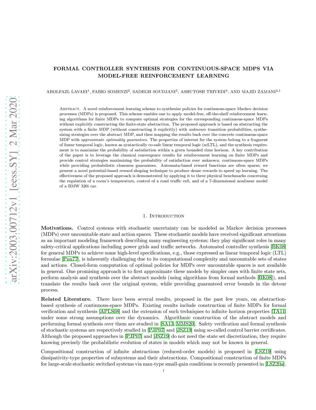 Formal Controller Synthesis for Continuous-Space MDPs via Model-Free