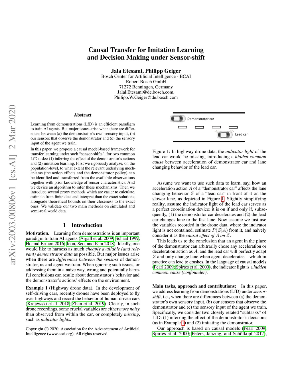 Learning from demonstrations (LfD) is an efficient paradigm to train AI agents. But major issues arise when there are differences between (a) the demonstrator's own sensory input, (b) our sensors that observe the demonstrator and (c) the sensory input of the agent we train. In this paper, we propose a causal model-based framework for transfer learning under such "sensor-shifts", for two common LfD tasks: (1) inferring the effect of the demonstrator's actions and (2) imitation learning. First we rigorously analyze, on the population-level, to what extent the relevant underlying mechanisms (the action effects and the demonstrator policy) can be identified and transferred from the available observations together with prior knowledge of sensor characteristics. And we device an algorithm to infer these mechanisms. Then we introduce several proxy methods which are easier to calculate, estimate from finite data and interpret than the exact solutions, alongside theoretical bounds on their closeness to the exact ones. We validate our two main methods on simulated and semi-real world data.