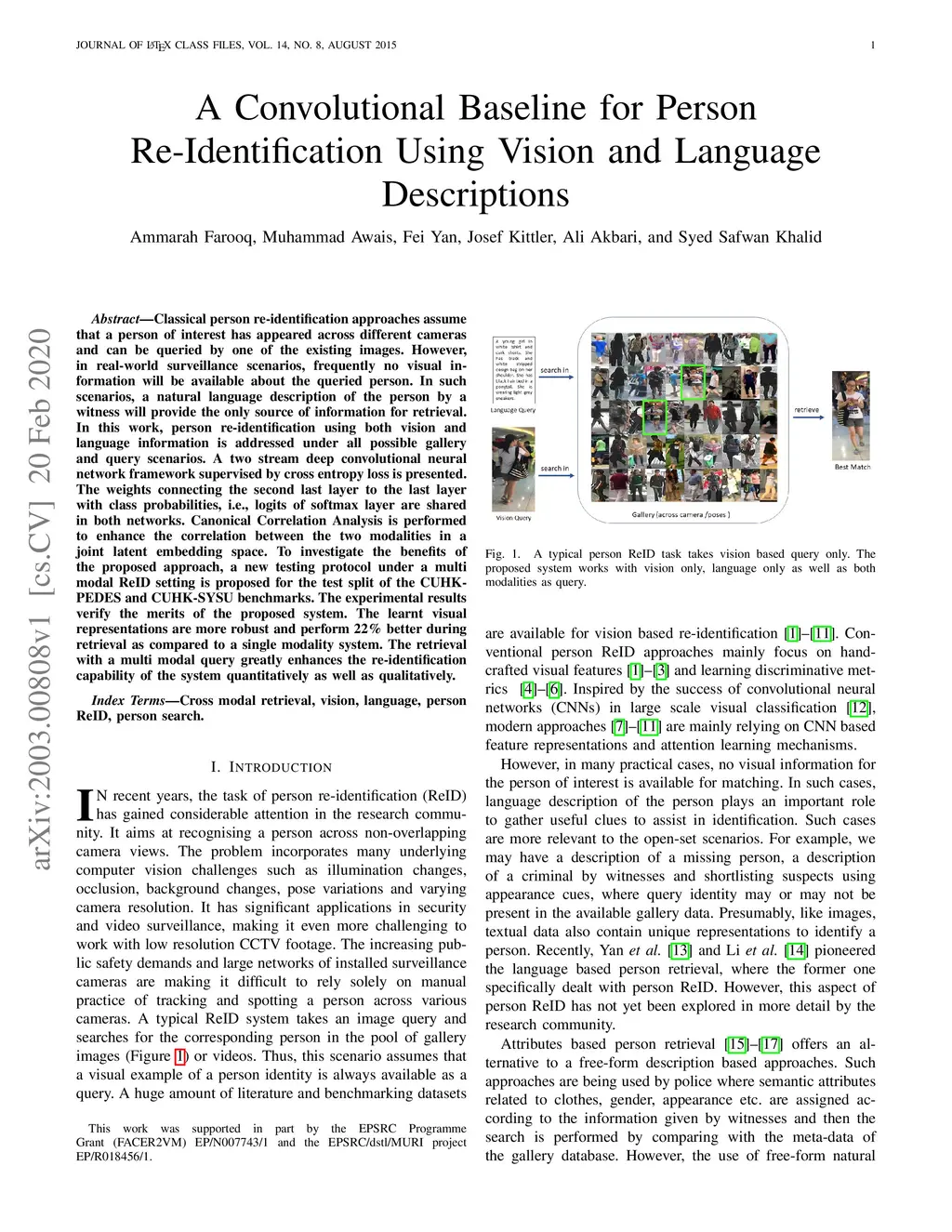 A Convolutional Baseline for Person Re-Identification Using Vision and