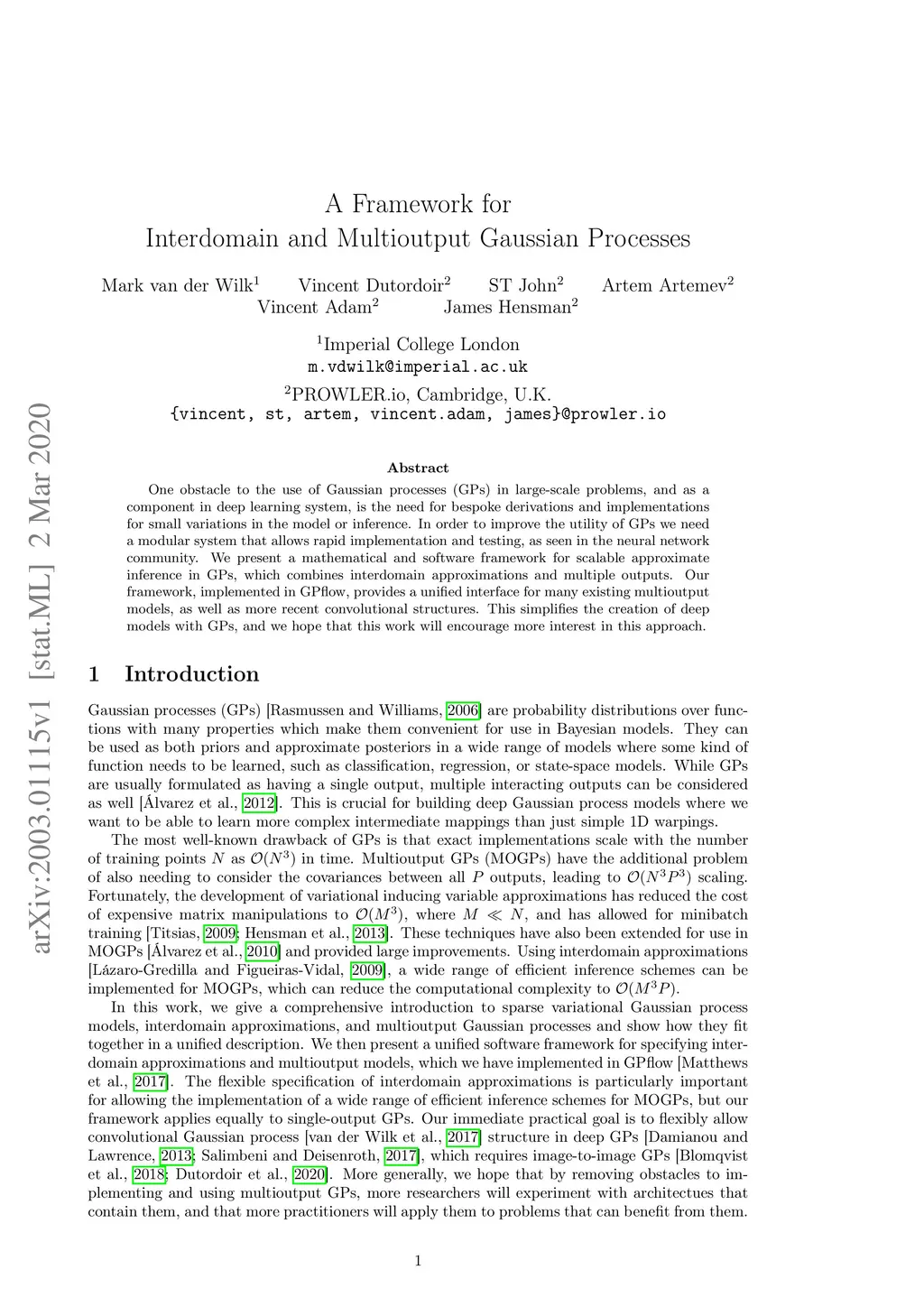One obstacle to the use of Gaussian processes (GPs) in large-scale problems, and as a component in deep learning system, is the need for bespoke derivations and implementations for small variations in the model or inference. In order to improve the utility of GPs we need a modular system that allows rapid implementation and testing, as seen in the neural network community. We present a mathematical and software framework for scalable approximate inference in GPs, which combines interdomain approximations and multiple outputs. Our framework, implemented in GPflow, provides a unified interface for many existing multioutput models, as well as more recent convolutional structures. This simplifies the creation of deep models with GPs, and we hope that this work will encourage more interest in this approach.