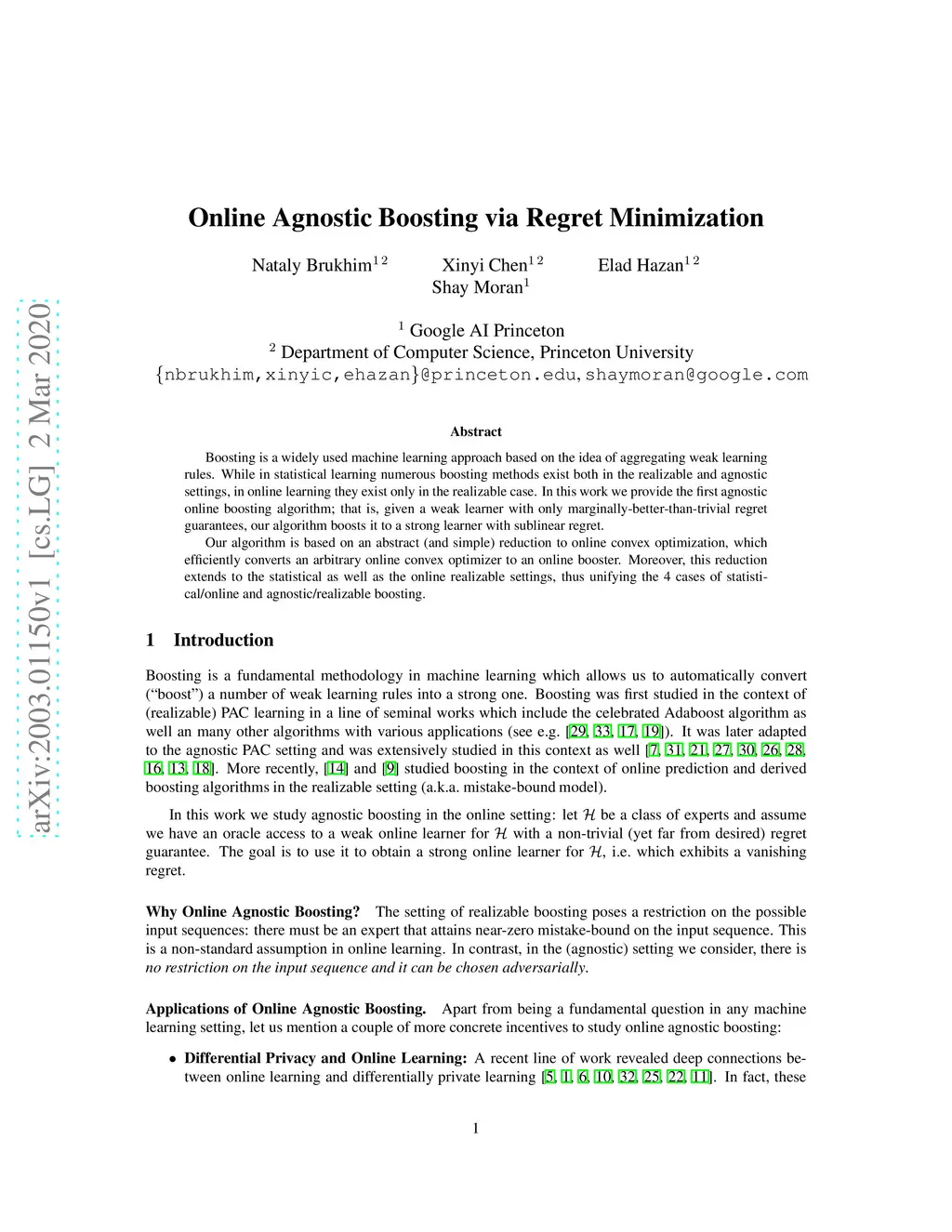 Boosting is a widely used machine learning approach based on the idea of aggregating weak learning rules. While in statistical learning numerous boosting methods exist both in the realizable and agnostic settings, in online learning they exist only in the realizable case. In this work we provide the first agnostic online boosting algorithm; that is, given a weak learner with only marginally-better-than-trivial regret guarantees, our algorithm boosts it to a strong learner with sublinear regret. Our algorithm is based on an abstract (and simple) reduction to online convex optimization, which efficiently converts an arbitrary online convex optimizer to an online booster. Moreover, this reduction extends to the statistical as well as the online realizable settings, thus unifying the 4 cases of statistical/online and agnostic/realizable boosting.