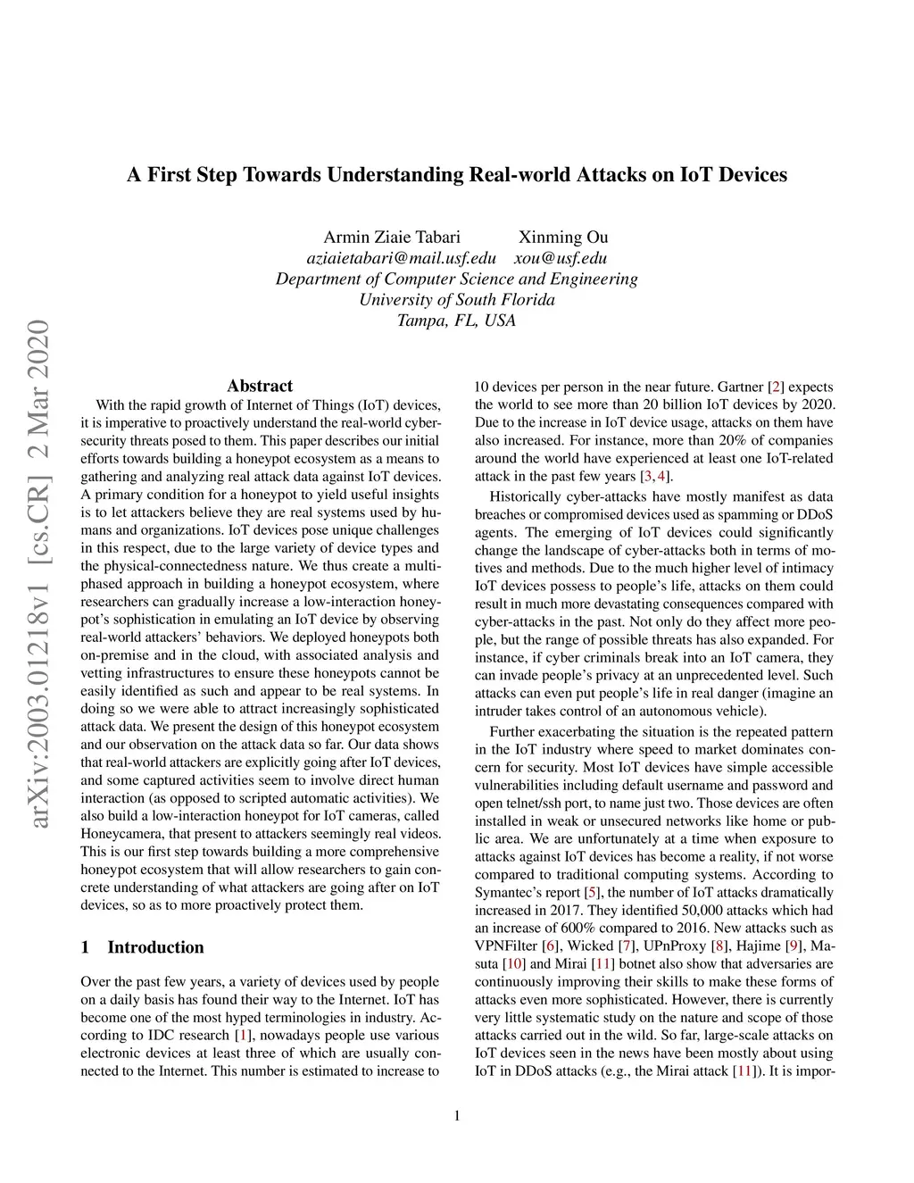 A First Step Towards Understanding Real-world Attacks on IoT Devices