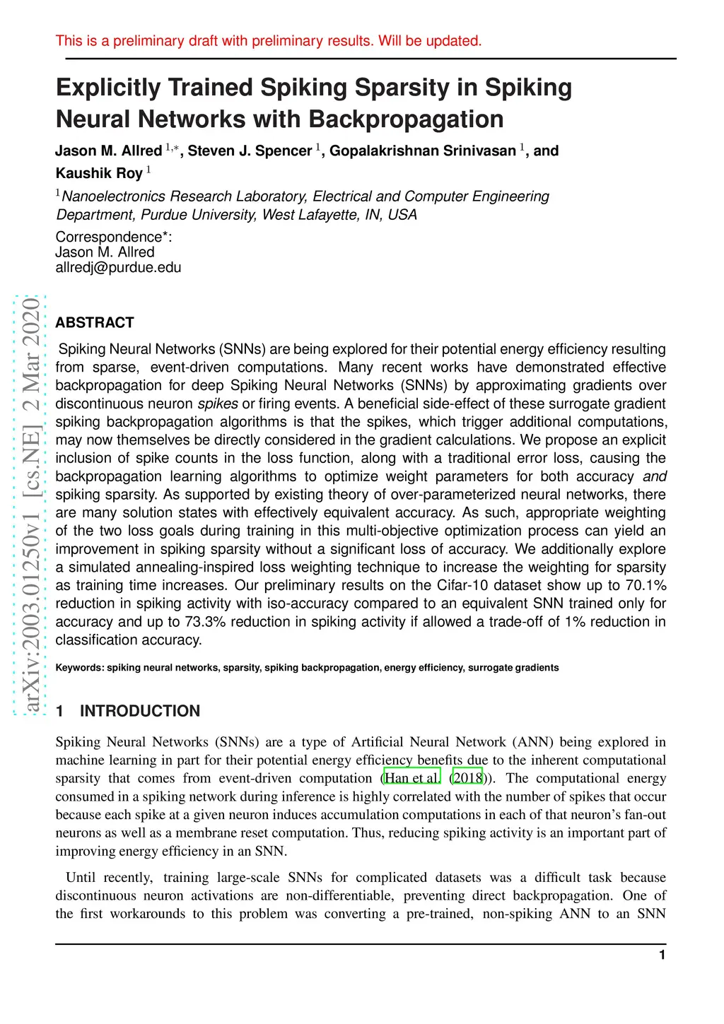 Spiking Neural Networks (SNNs) are being explored for their potential energy efficiency resulting from sparse, event-driven computations. Many recent works have demonstrated effective backpropagation for deep Spiking Neural Networks (SNNs) by approximating gradients over discontinuous neuron spikes or firing events. A beneficial side-effect of these surrogate gradient spiking backpropagation algorithms is that the spikes, which trigger additional computations, may now themselves be directly considered in the gradient calculations. We propose an explicit inclusion of spike counts in the loss function, along with a traditional error loss, causing the backpropagation learning algorithms to optimize weight parameters for both accuracy and spiking sparsity. As supported by existing theory of over-parameterized neural networks, there are many solution states with effectively equivalent accuracy. As such, appropriate weighting of the two loss goals during training in this multi-objective optimization process can yield an improvement in spiking sparsity without a significant loss of accuracy. We additionally explore a simulated annealing-inspired loss weighting technique to increase the weighting for sparsity as training time increases. Our preliminary results on the Cifar-10 dataset show up to 70.1% reduction in spiking activity with iso-accuracy compared to an equivalent SNN trained only for accuracy and up to 73.3% reduction in spiking activity if allowed a trade-off of 1% reduction in classification accuracy.