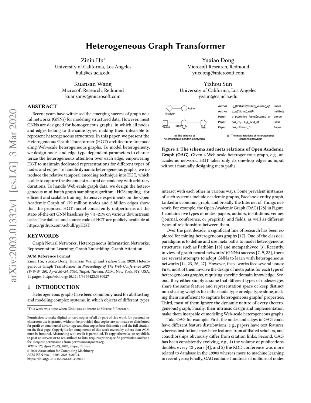 Heterogeneous Graph Transformer