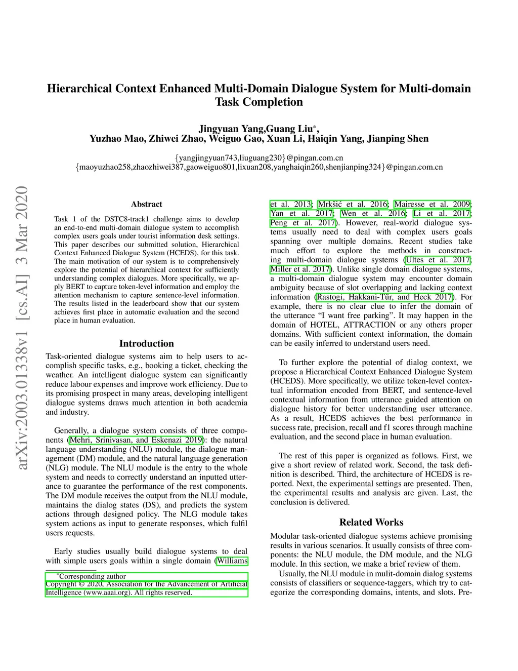 Hierarchical Context Enhanced Multi-Domain Dialogue System for
