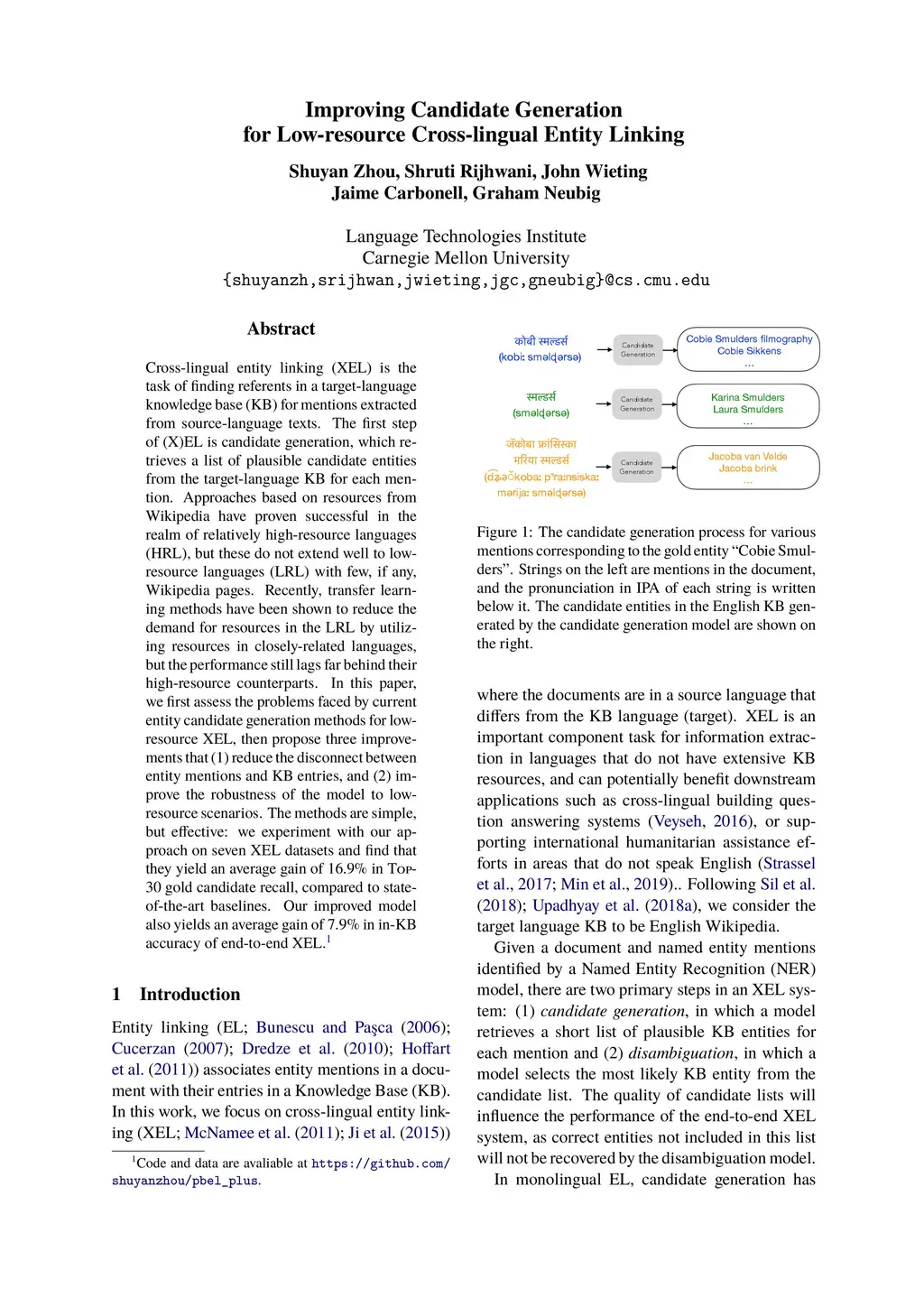 Improving Candidate Generation for Low-resource Cross-lingual Entity