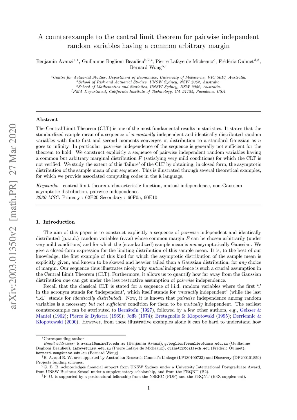 The Central Limit Theorem (CLT) is one of the most fundamental results in statistics. It states that the standardized sample mean of a sequence of mutually independent and identically distributed random variables with finite first and second moments converges in distribution to a standard Gaussian as goes to infinity. In particular, pairwise independence of the sequence is generally not sufficient for the theorem to hold. We construct explicitly a sequence of pairwise independent random variables having a common but arbitrary marginal distribution (satisfying very mild conditions) for which the CLT is not verified. We study the extent of this 'failure' of the CLT by obtaining, in closed form, the asymptotic distribution of the sample mean of our sequence. This is illustrated through several theoretical examples, for which we provide associated computing codes in the R language.