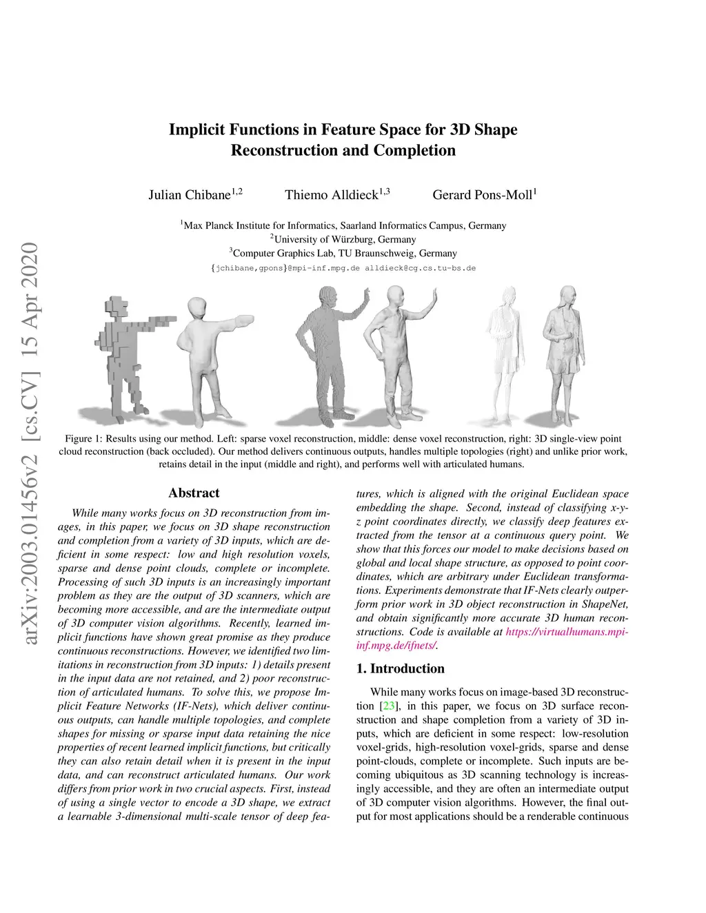 Implicit Functions in Feature Space for 3D Shape Reconstruction and